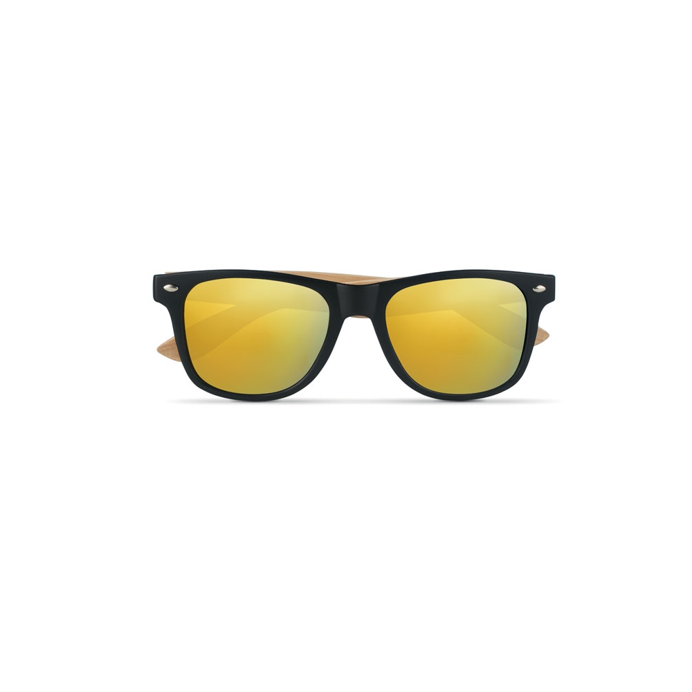 Nature Line Sonnenbrille mit UV400-Schutz. Schwarzer Rahmen aus haltbarem PC-Material und Bügel aus Bambus. AC (Cellulose-Acetat)-Gläser mit Verspiegelung, erhältlich in einer breiten Farbpalette. Präsentiert in attraktiver Eco-Design-Box.