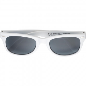 Diese Sonnenbrille im Retro-Design ist das ideale Werbegeschenk für Sommerfestivals, Veranstaltungen oder andere sonnige Outdoor-Aktivitäten. Die Brille entspricht der Norm EN ISO 12312-1, hat UV400-Gläser der Kategorie 3 und ist damit die perfekte Wahl für den Schutz vor hellem Sonnenlicht. Dank des PC-Kunststoffmaterials ist die Sonnenbrille leicht und angenehm zu tragen.