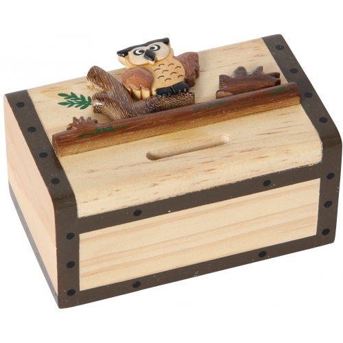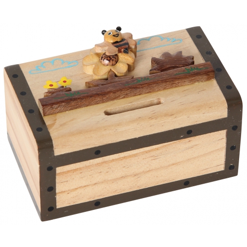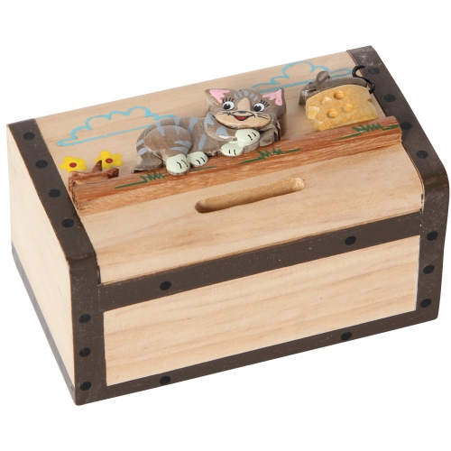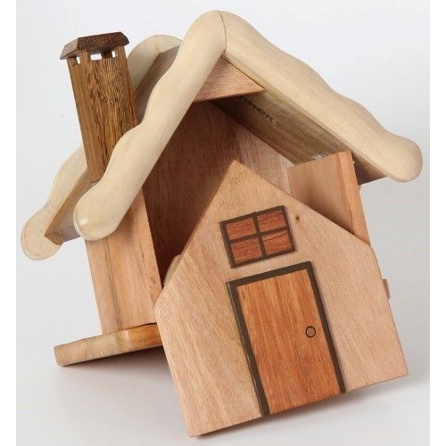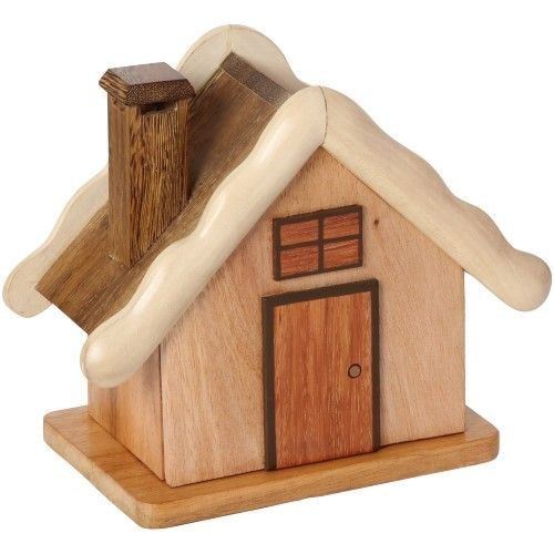 Die Holzhäuschen-Spardose ist nur mit einem Trick zu öffnen. Zwei Designs sortiert. Maße: 14,5 x 8,5 x 18,5 cm oder 16 x 8,5 x 13,5 cm. Achtung! Kein Spielzeug!