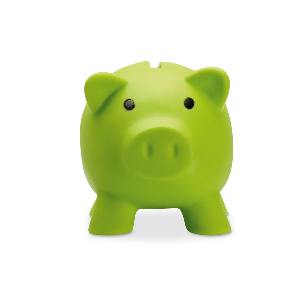Kleines lustiges Sparschwein mit abnehmbarer Schnauze. Werbeanbringung wird im Tampondruck realisiert. Ideal für Banken und Sparkassen, Versicherungen etc.. Lieferbar in hellblau und rosa. Ab 5.500 Stück Sonderfarben nach Pantone erhältlich - Lieferzeit ca. 12 Wochen.