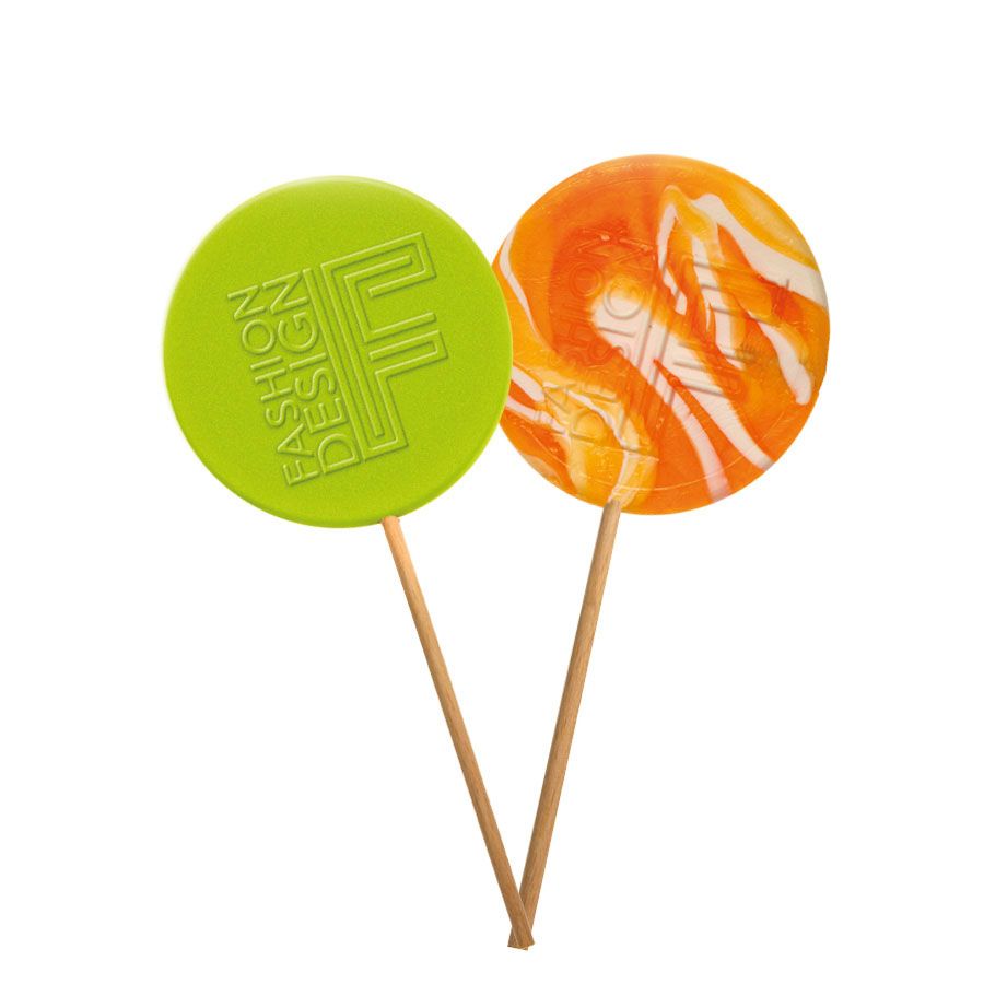 Der Lolly ist in 80 mm und 100 mm Durchmesser verfügbar. Verschiedenste Farben und Geschmacksrichtungen wählbar.