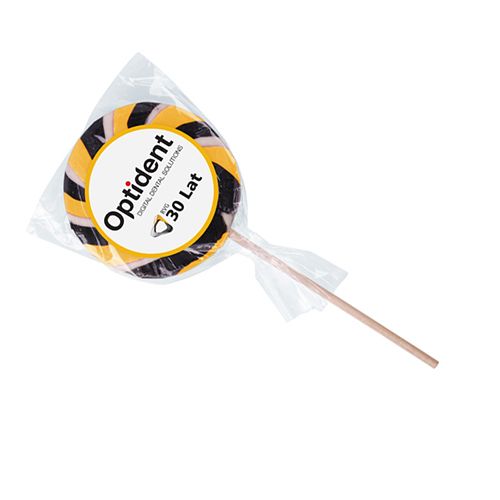 Artikel-Nr: P94250Flachlolly in transparenter Schutzhülle mit rundem, individuellem, flächig bedruckbarem Aufkleber.