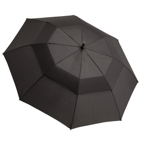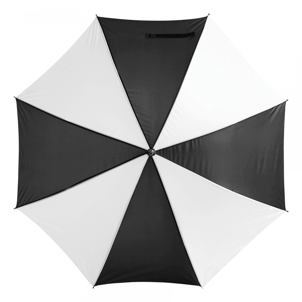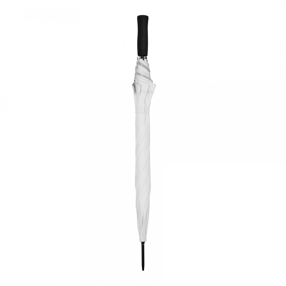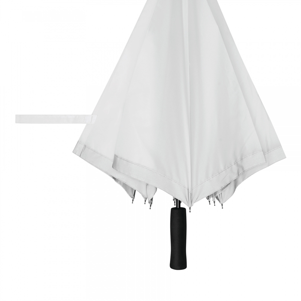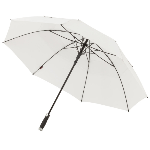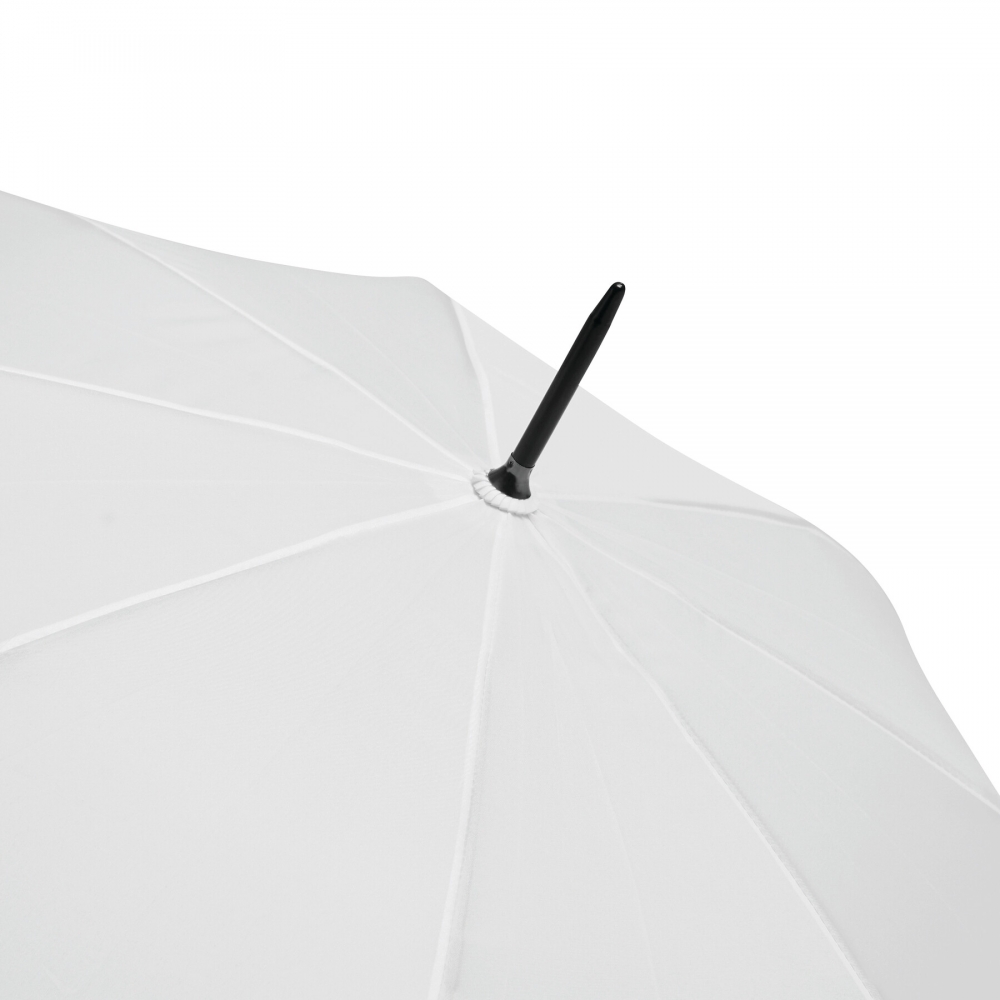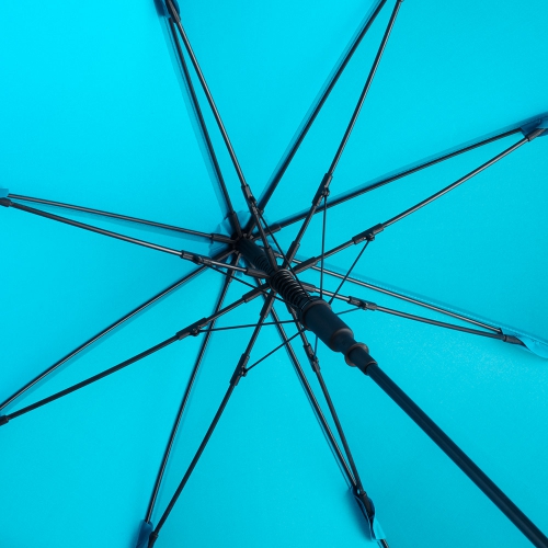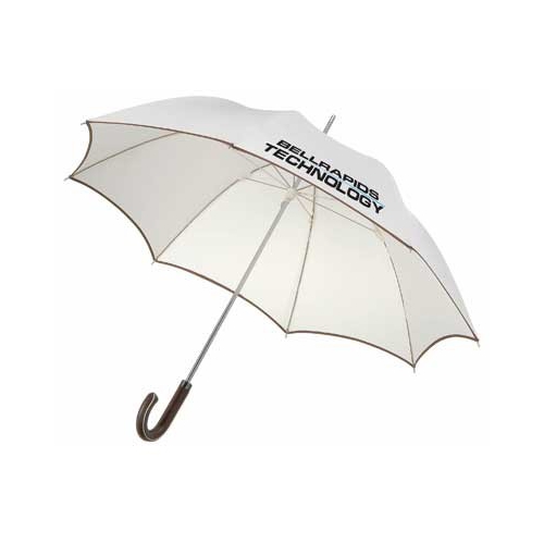Großer Regenschirm mit winddichtem Fiberglasgestell. Der pfiffige Farbeffekt zwischen der Pongee-Polyesterkappe und dem ergonomischen Griff verleiht dem Schirm einen zeitlosen Look. Damit ist er für jeden geeignet.