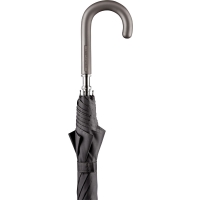 Stockschirm aus R-PET-Material mit einem eleganten Holzhakengriff. Durch den stabilen Fiberglasrahmen ist der Schirm sturmsicher. Die Spitzen sind aus Bambus und der Schaft aus Metall, somit können alle Elemente recycelt werden. Das melierte Material verleiht dem Modell einen luxuriösen Look.