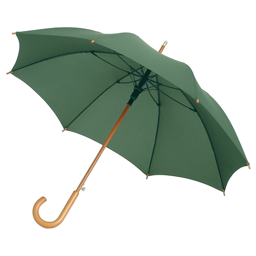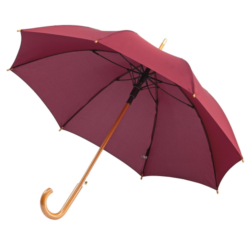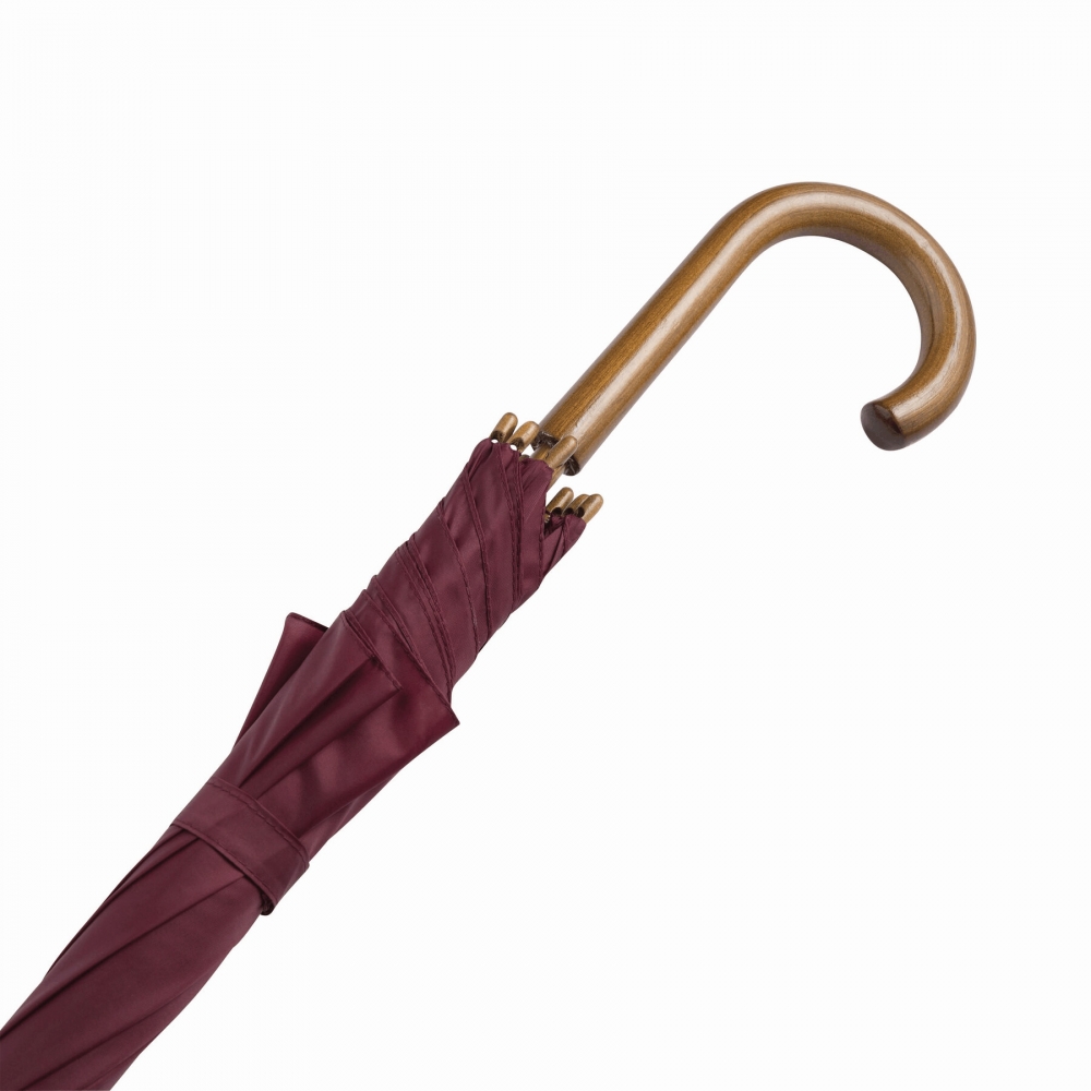 Stockschirm mit Handöffner, Polyester-Pongee-Bespannung(hydrophob imprägniert), Holz-Stab, Speichengestell exklusiver, gebogener Rundhaken-Griff aus Holz, mit angepasster Stockspitze, aluminium-farbene Speichentips, WINDSICHER. In verschiedenen Farben und Ausstattungen erhältlich.