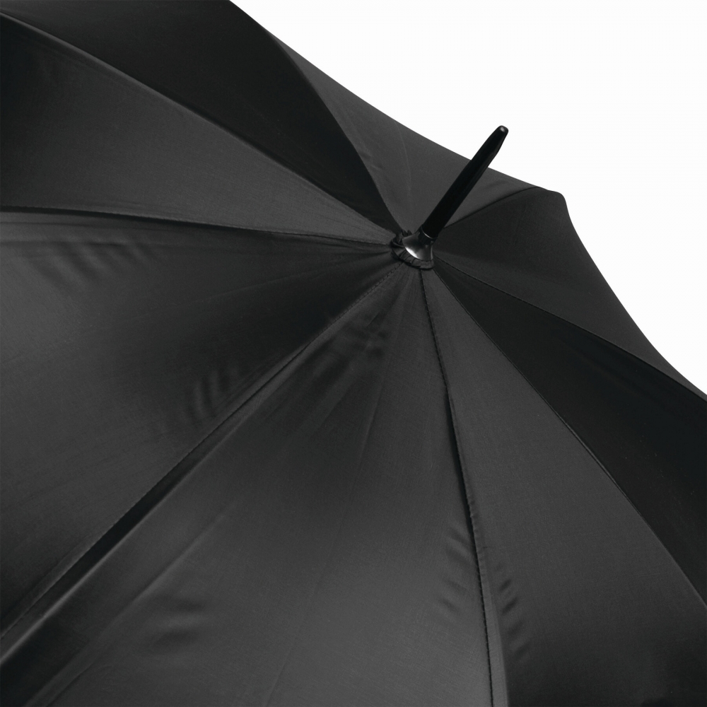 Stockschirm mit Handöffner, Polyester-Pongee-Bespannung (hydrophob imprägniert), Holz-Stab, Speichengestell exklusiver, gerader Griff aus Kunststoff., mit angepasster Stockspitze, aluminium-farbene Speichentips, WINDSICHER. In verschiedenen Farben und Ausstattungen erhältlich.