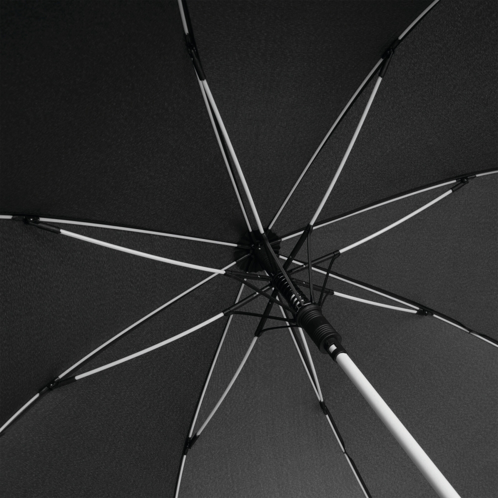 FARE®-AC Stockschirm,TÜV-zertifiziert, automatisch öffnend, 60 cm/8-teilig, 12 mm Fiberglasstock, Fiberglasschienen, matter gerader Kunststoffgriff und -top jeweils farblich passend zum Bezug, matte Nickelspitzen, 100 % Polyester-Pongee Bezug mit silberner Reflexpaspel (gem. DIN EN 471)*, Windproof-System, ca.105 cm Ø, ca. 81,5 cm lang, ca. 480 g, VE 24 Stück *Produkt wird nach Abverkauf aktueller Lagerbestände auf silberne Reflexpaspel nach EN ISO 20471 umgestellt.