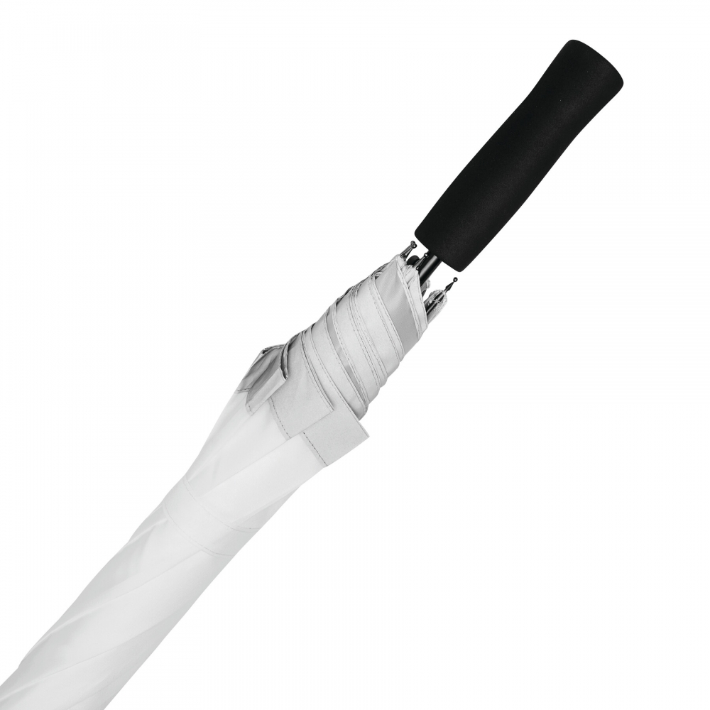 Windmatic® Midsize Automatik Alu Stockschirm, TÜV-zertifiziert, 65 cm / 8-teilig, 14 mm Aluminiumstock, Fiberglasschienen, spezialbeschichteter silberner Griff, Bezug mit silberner Reflexpaspel (gem. DIN EN 471)*, Nickelspitzen, 100 % Polyester-Pongee Bezug mit original DuPont ™ Teflon® behandelt (wasser- und schmutzabweisend), Windproof-System, ca. 115 cm Ø, ca. 93 cm lang, ca. 510 g, VE 12 Stück *Produkt wird nach Abverkauf aktueller Lagerbestände auf silberne Reflexpaspel nach EN ISO 20471 umgestellt.