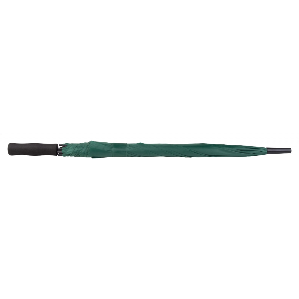 Automatischer Windproof-Stockschirm JUBILEE: Aluminiumstock, Fiberglasspeichen, Metalltips, gummierter und farblich abgestimmter Rundhakengriff, Polyester-Bespannung und -Hülle mit Wabenstruktur, Verschlussband mit Druckknopf und Metall-Platte zur Werbeanbringung