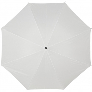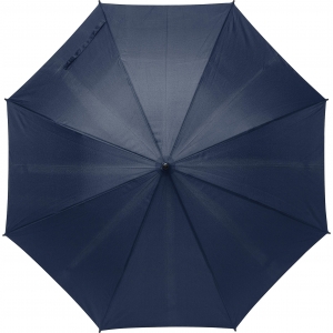 Automatik-Stockschirm mit 8 Segmenten, Bespannung aus RPET, Metallrahmen, Holzstock und -griff. Mit RPET-Label.