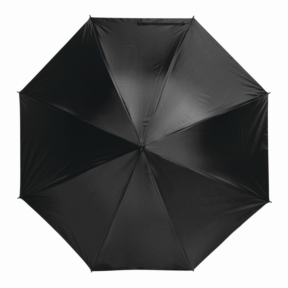 Ausführung: Farbe: Schwarz Gewicht: 0,37083333 kg Maße: 105 cm Menge pro Karton: 48 Gewicht pro Karton: 19,3 kg Material: 190T recyceltem PET Pongee, 70 g/m2, Holz, Metall Zolltarifnummer: 6601992000 EAN / GTIN: 4063755026424