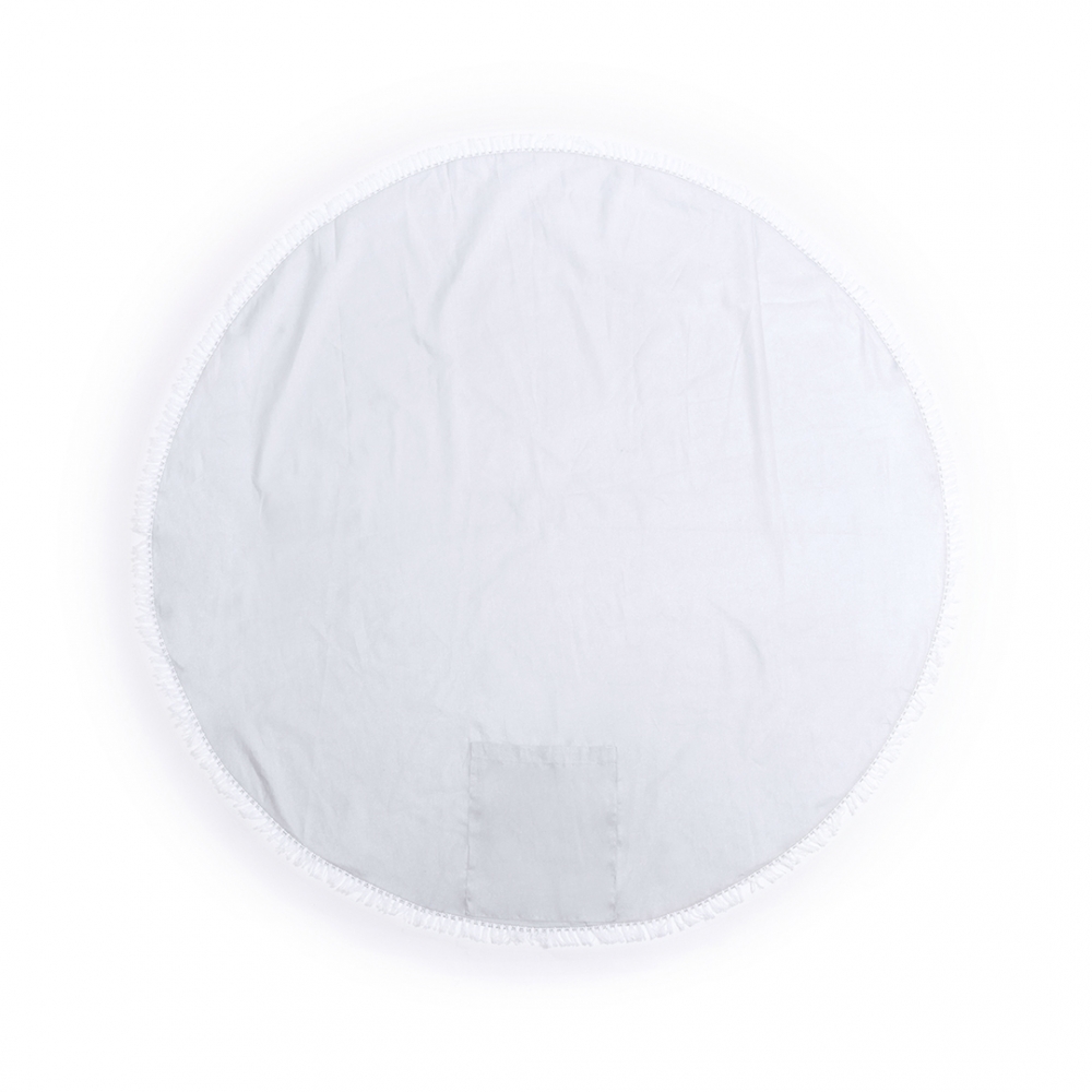 Strandtuch mit Fransen aus Baumwolle (125 g / m2). Mit originellem kreisförmigem Design in lebendigen Farben.