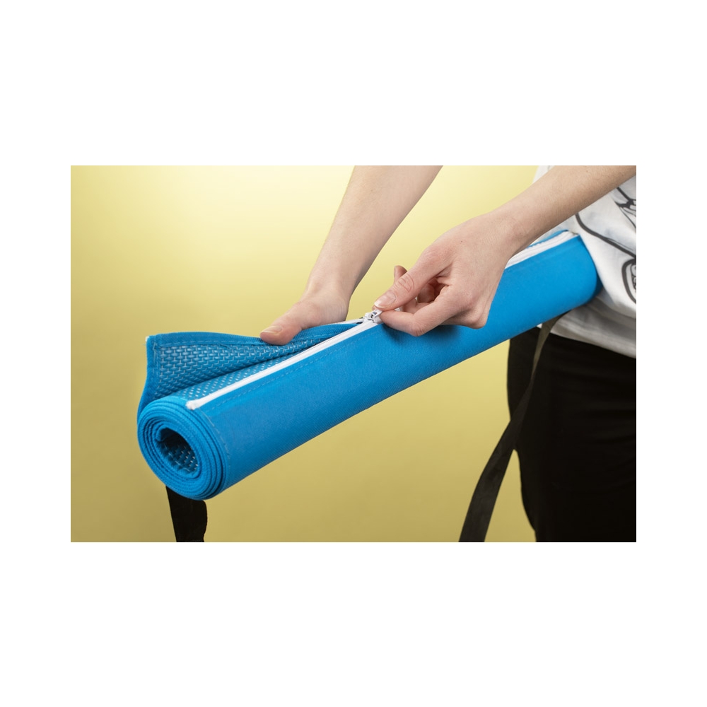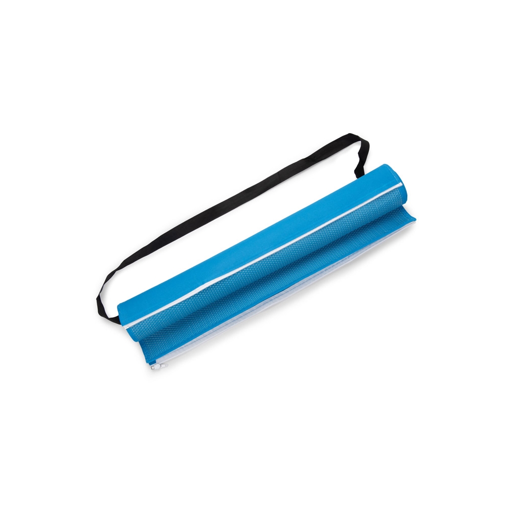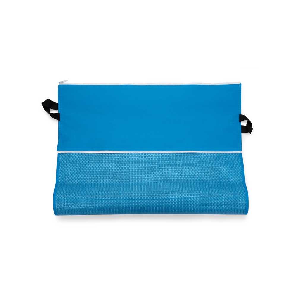 Strandmatte (180 x 60 cm) in trendigen Farben aus wasser- und schmutzabweisendem Kunststoffgeflecht. Lässt sich mit dem integrierten Reißverschluss und dem verstellbaren Tragegurt super transportieren. Ihre Werbung drucken wir im Siebdruck unterhalb des Tragehenkels.