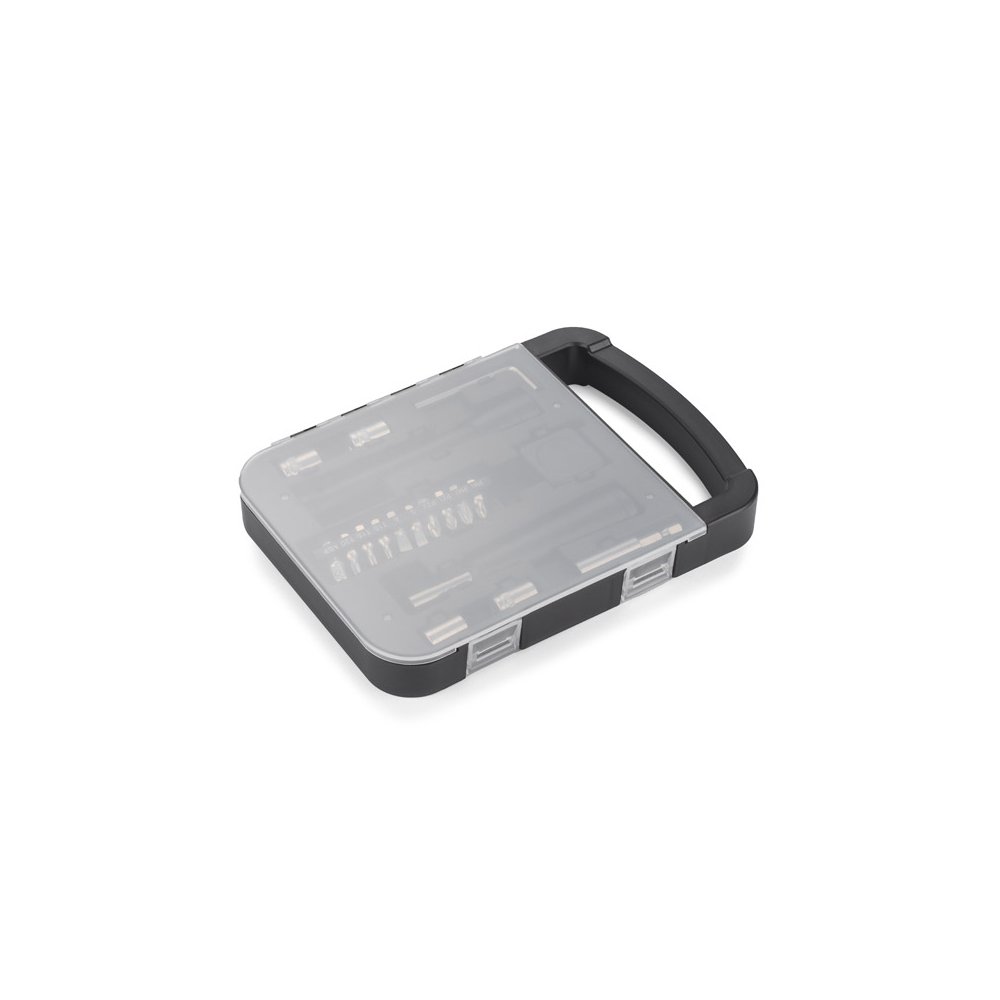 Artikel-Nr: ARD29178FIXO ist ein Werkzeugset in einem praktischen Koffer. Im Set befinden sich ein Inbusschlüssel, eine Taschenlampe, ein Maßband, ein Schraubendreher, zehn verschiedene Bits, eine Verlängerung und vier Steckschlüsseleinsätze von 7 mm, 8 mm, 9 mm und 10 mm.