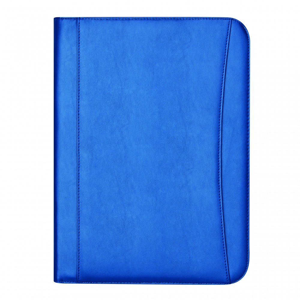 DIN A4 Konferenzmappe aus Kunstleder. Block mit 20 Blatt (40 Seiten) liniertem Papier und Solartaschenrechner. Inkl. Druckkugelschreiber aus Metall. Blaue Tinte.