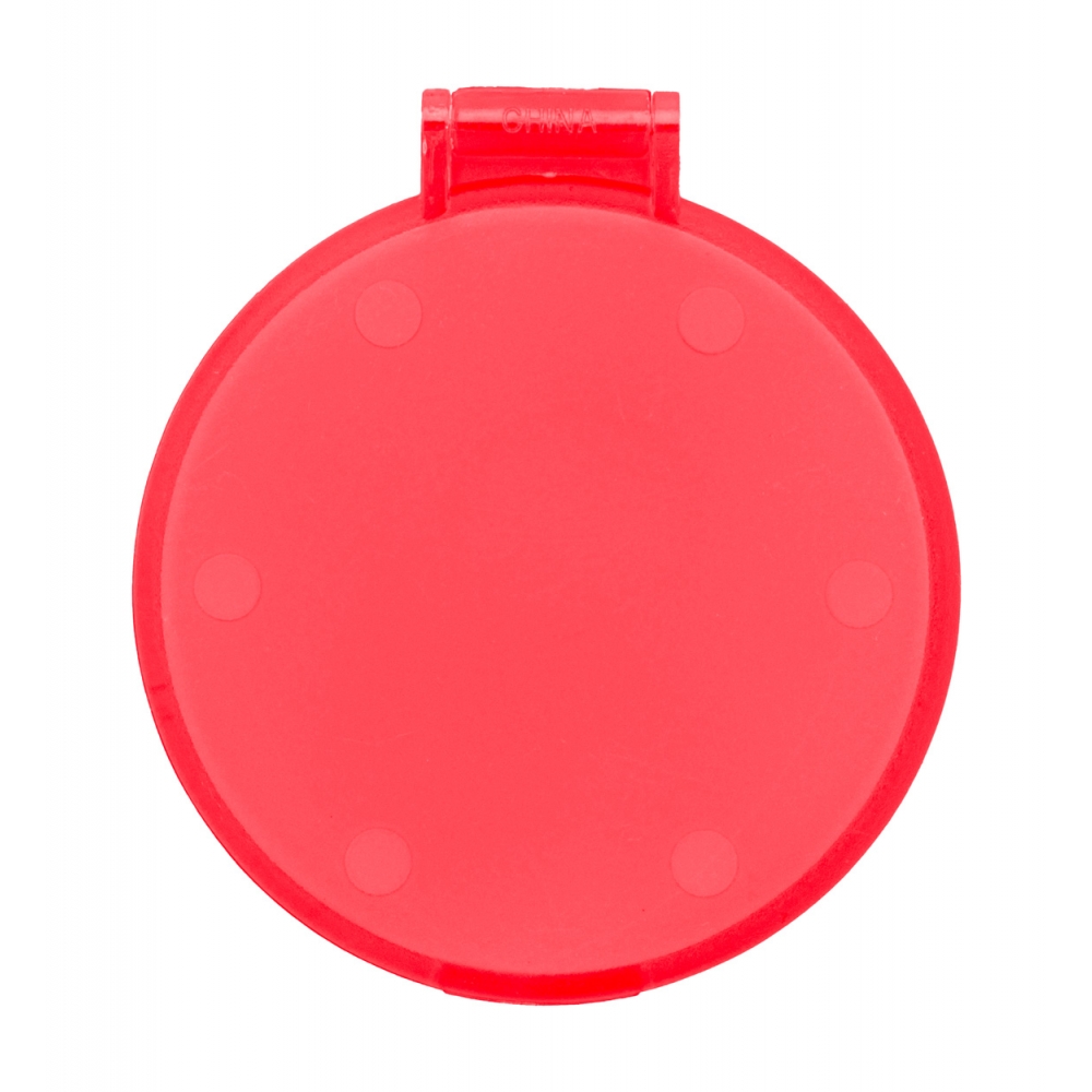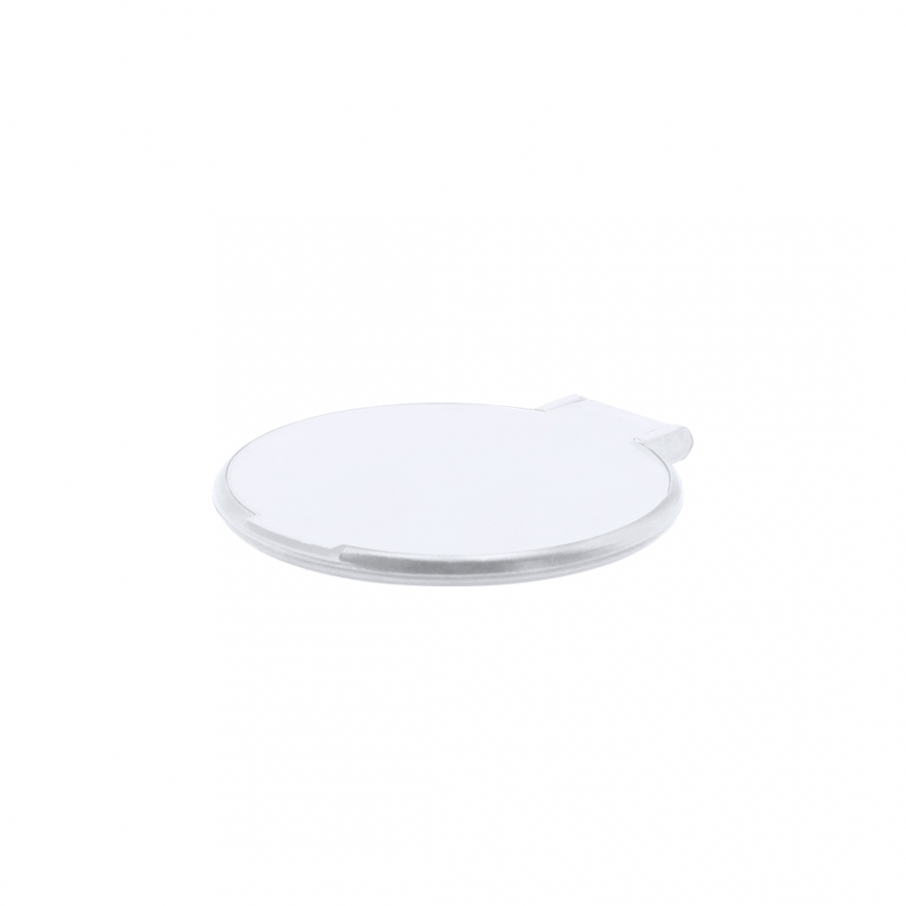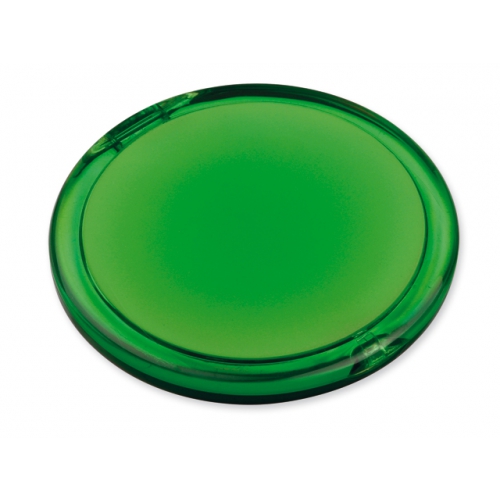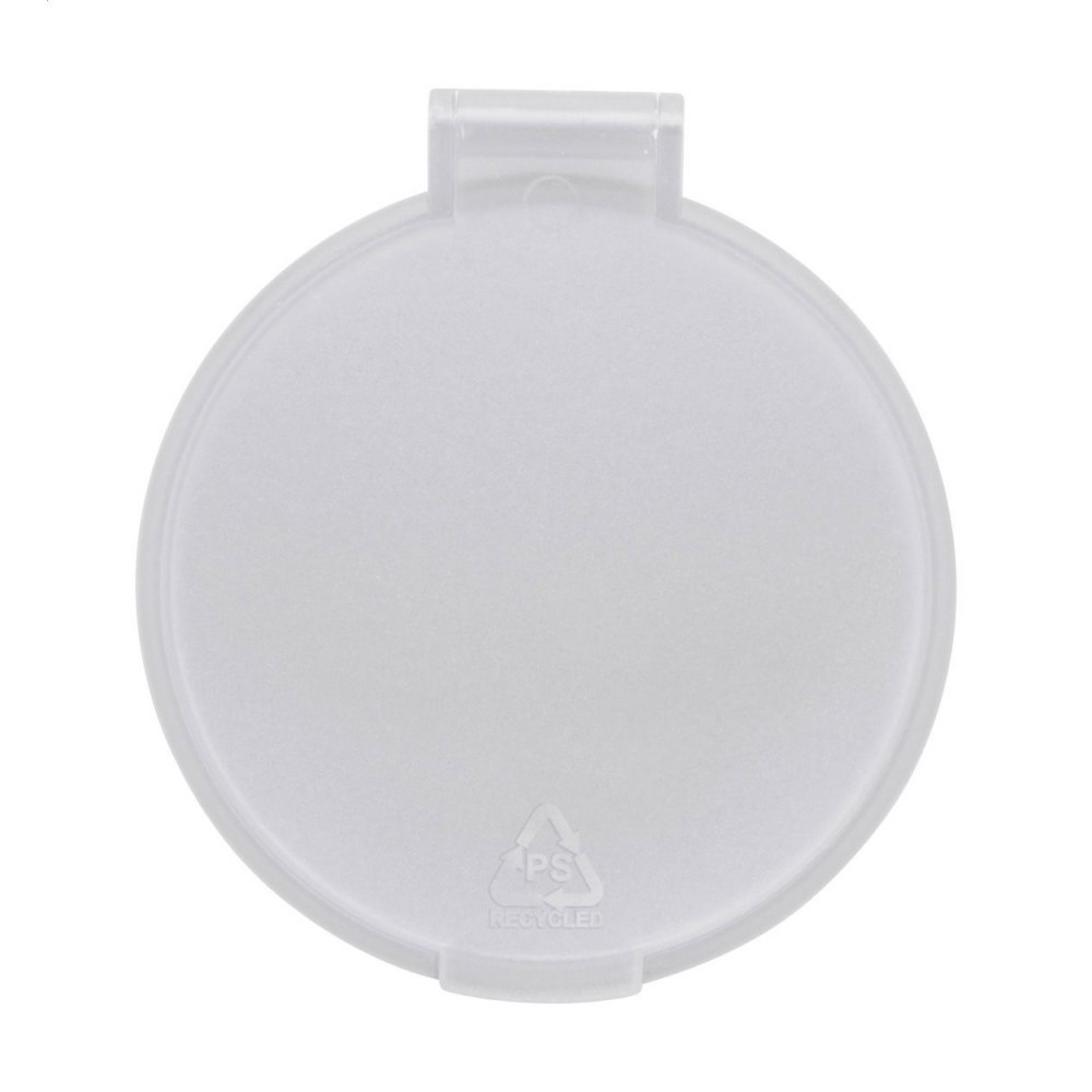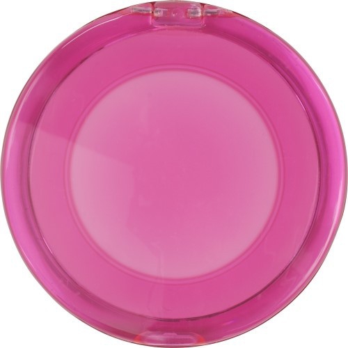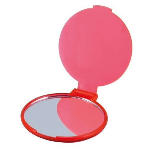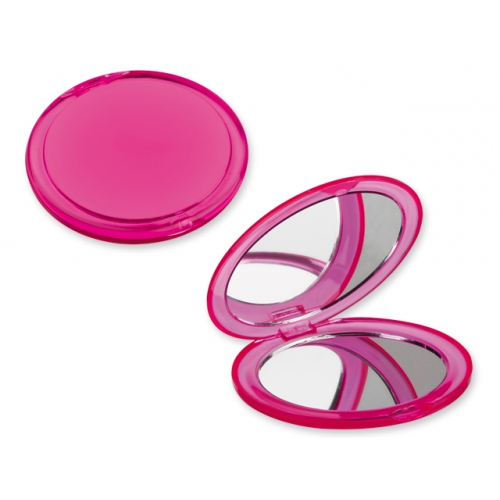 Schminkspiegel aus Kunststoff (PS). Äußerst praktisch, Bedruckung auf der Oberseite. Abmessungen: 70 x 61 x 6 mm. Farbe/n: Gefrostet Rosé, Gefrostet Schwarz, Gefrostet Weiß. Werbeanbringung: Ø 45 mm.