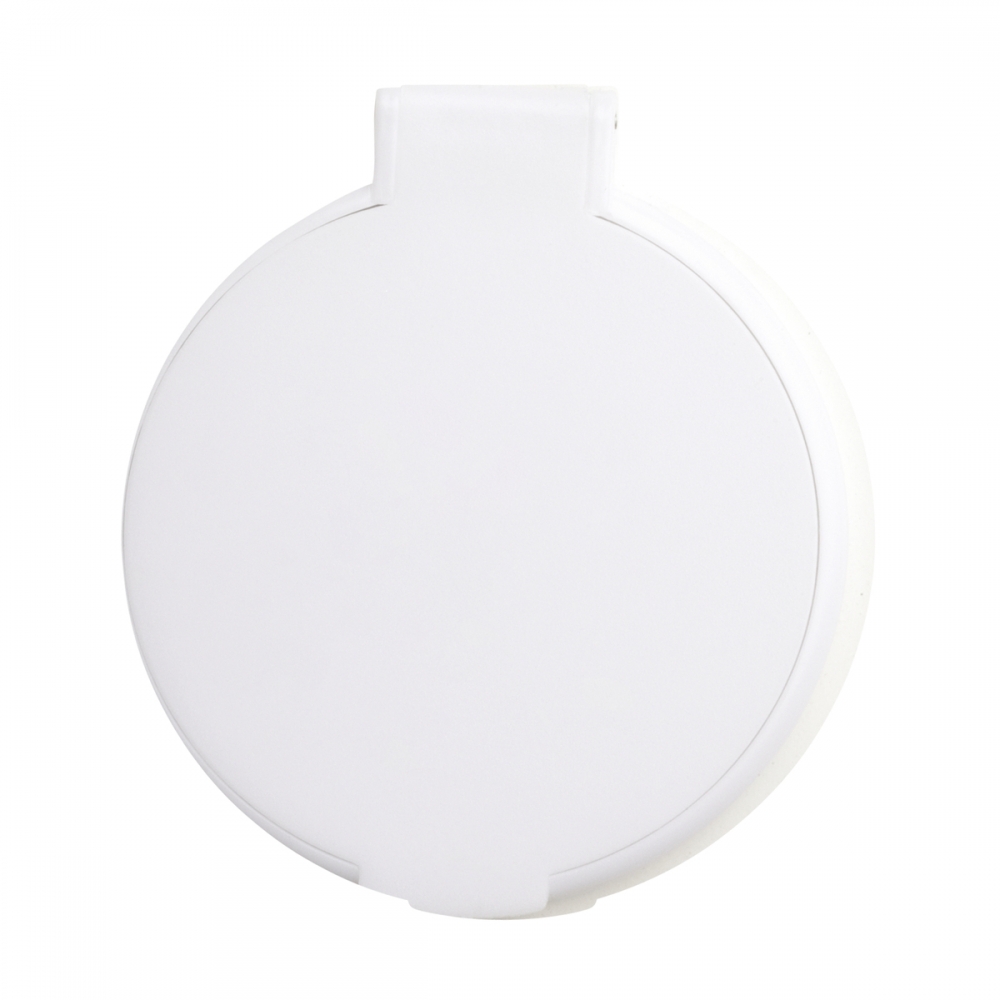 Der weiße, griffige Taschenspiegel passt in jede Kosmetik- und Handtasche und zieht die Blicke auf sich. Das einseitige Spiegelglas ist durch seine verschließbare Oberseite vor Kratzern und Stößen geschützt. Diese bietet sich auch für eine auffällige Veredelung an. Entscheiden Sie sich für einen aufmerksamkeitsstarken, vollflächigen UV-Druck, ein Doming oder einen ein- bis vierfarbiger Tampondruck.