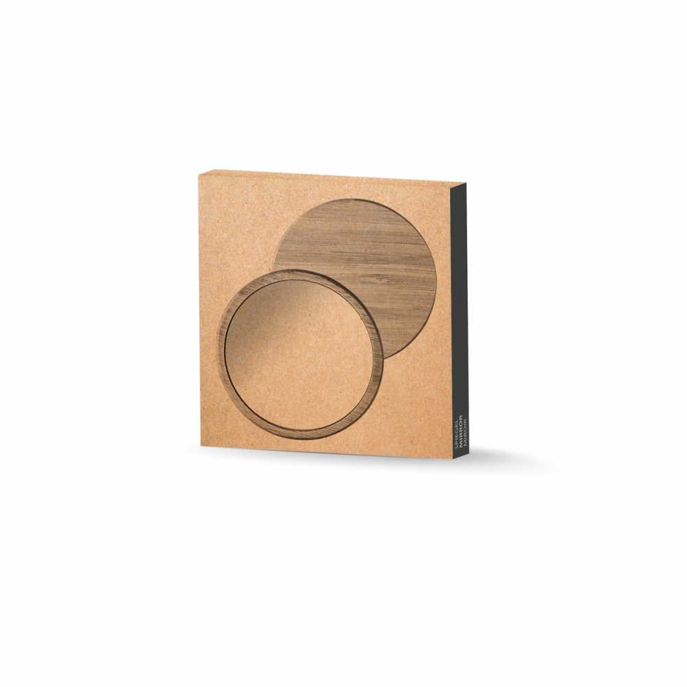Kompakter Bambus-Taschenspiegel für die Reise oder den täglichen Gebrauch für Hautpflege und Make-up. An der Unterseite des Spiegels befindet sich ein kleines Fach für kleine Accessoires. Der verwendete Bambus wird nach nachhaltigen Normen beschafft und produziert.