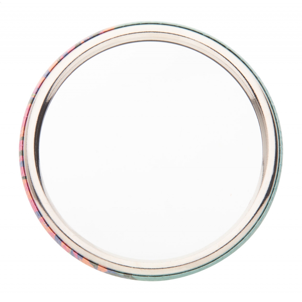 Make-up Spiegel (Normal- und Vergrößerungsspiegel). Glänzendes Metall. Im Veloursetui. Abmessung: 0,5xØ6 cm. Druckgröße: 40x40 mm. Erhältlich in den abgebildeten Farben.