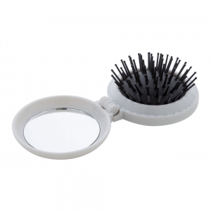 Faltbare Haarbürste aus recyceltem ABS mit Taschenspiegel.