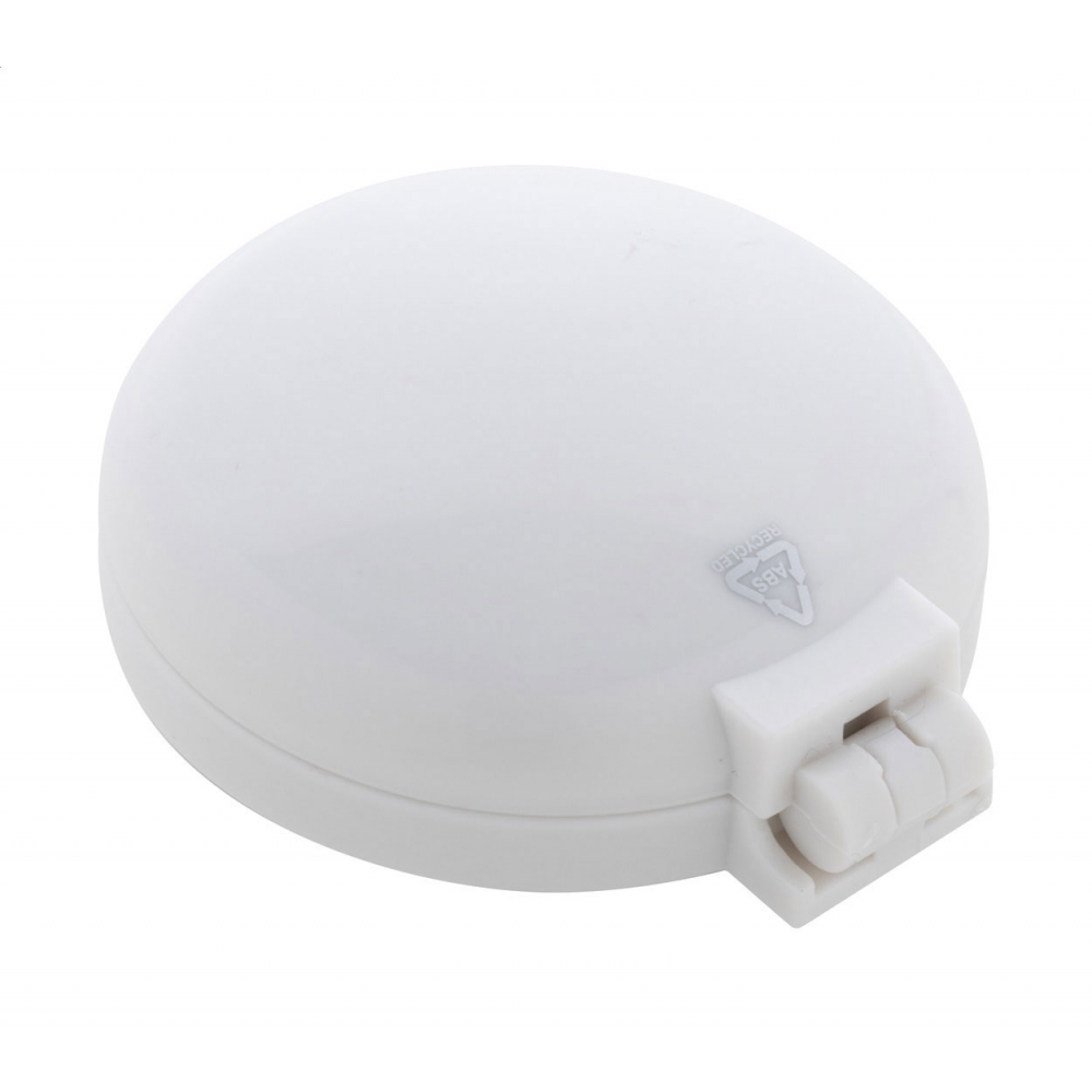 Moderner Make-up Spiegel mit weißem LED Licht. Ein praktischer Werbeartikel, der in keiner Handtasche fehlen sollte. Vier Knopfzellen sind bei der Lieferung inklusive. Format: ca. 70 x 13 mm. Druckgröße: 3 x 3 cm. Auch in den Farben Blau (Art.Nr. 3536329-04) und Weiß (Art.Nr. 3536329-06) erhältlich.