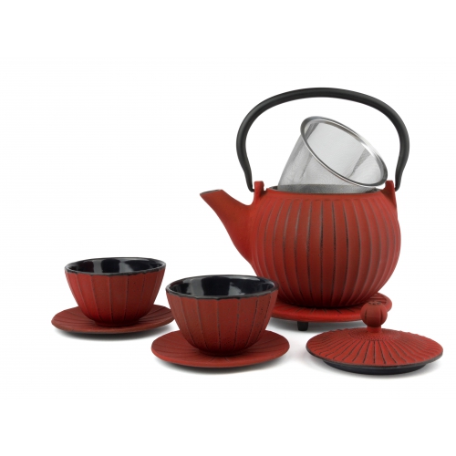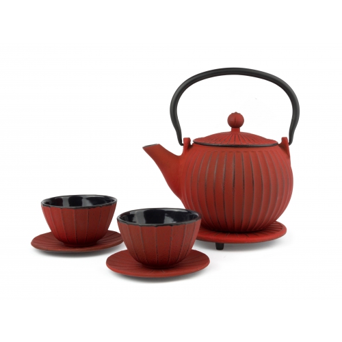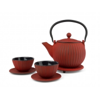 Hochwertiges Teeservice aus Keramik mit matter Oberfläche und Bambus-Serviertablett. Enthält eine Teekanne (500 ml) mit Edelstahldeckel und Teesieb sowie zwei Tassen (150 ml). Einzeln in Kraftpapierbox.