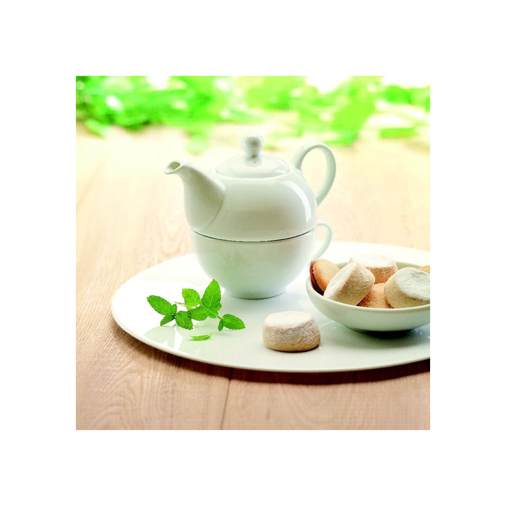 Teeset mit einer Teetasse (200ml), Kännchen (400ml) und Unterteller aus hochwertigem Porzellan für besten Teegenuss. Die Teekanne eignet sich besonders für Ihre Werbung, welche wir im Keramiktransfer anbringen.