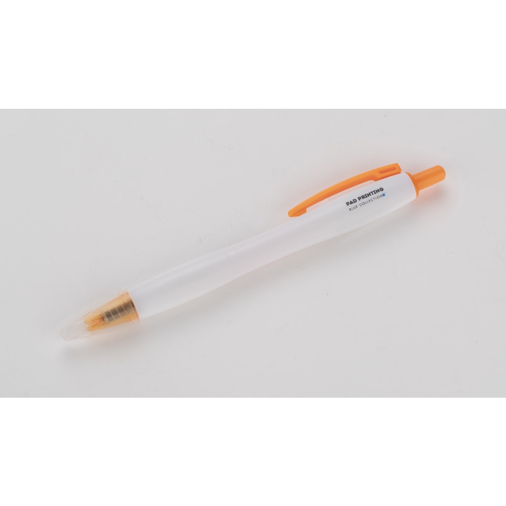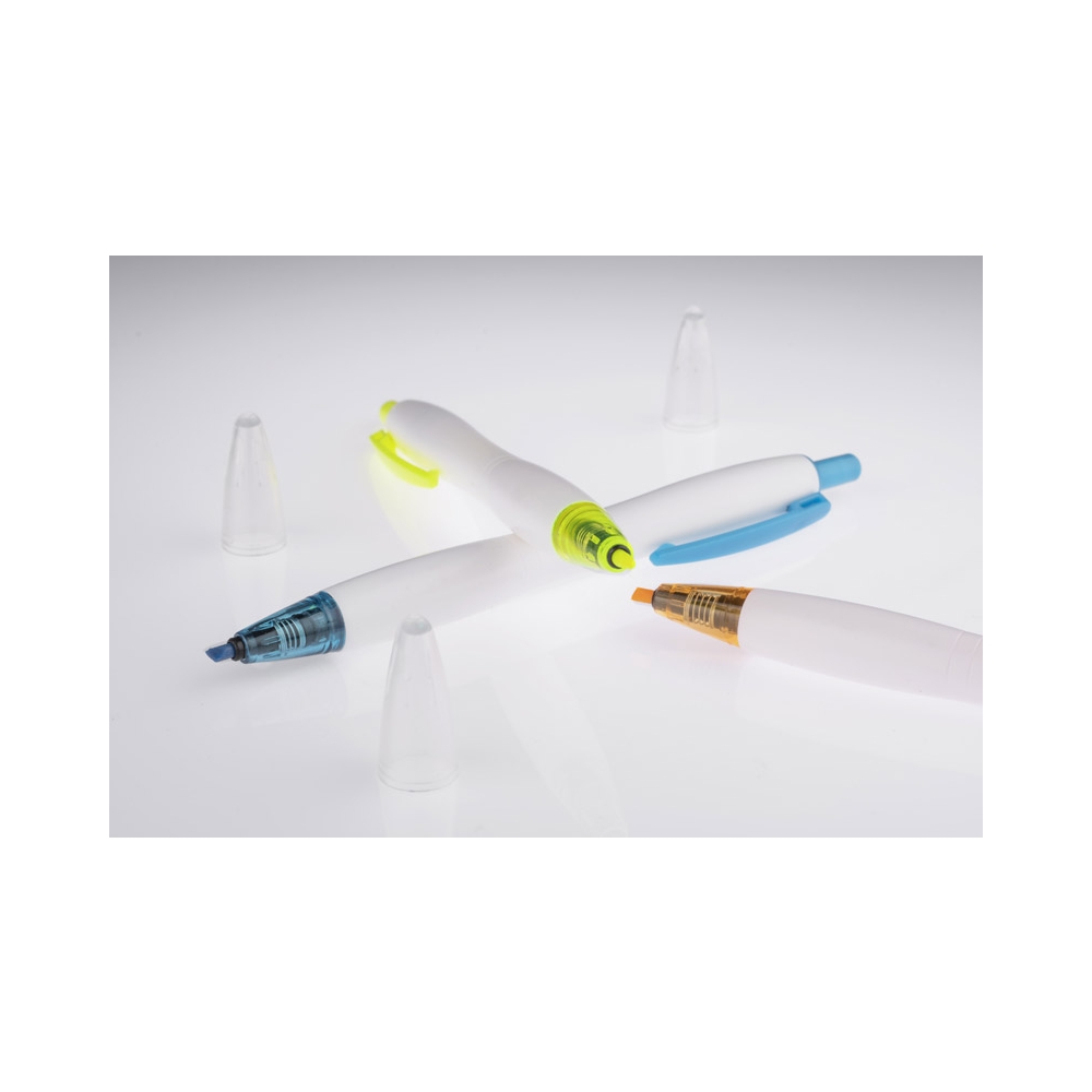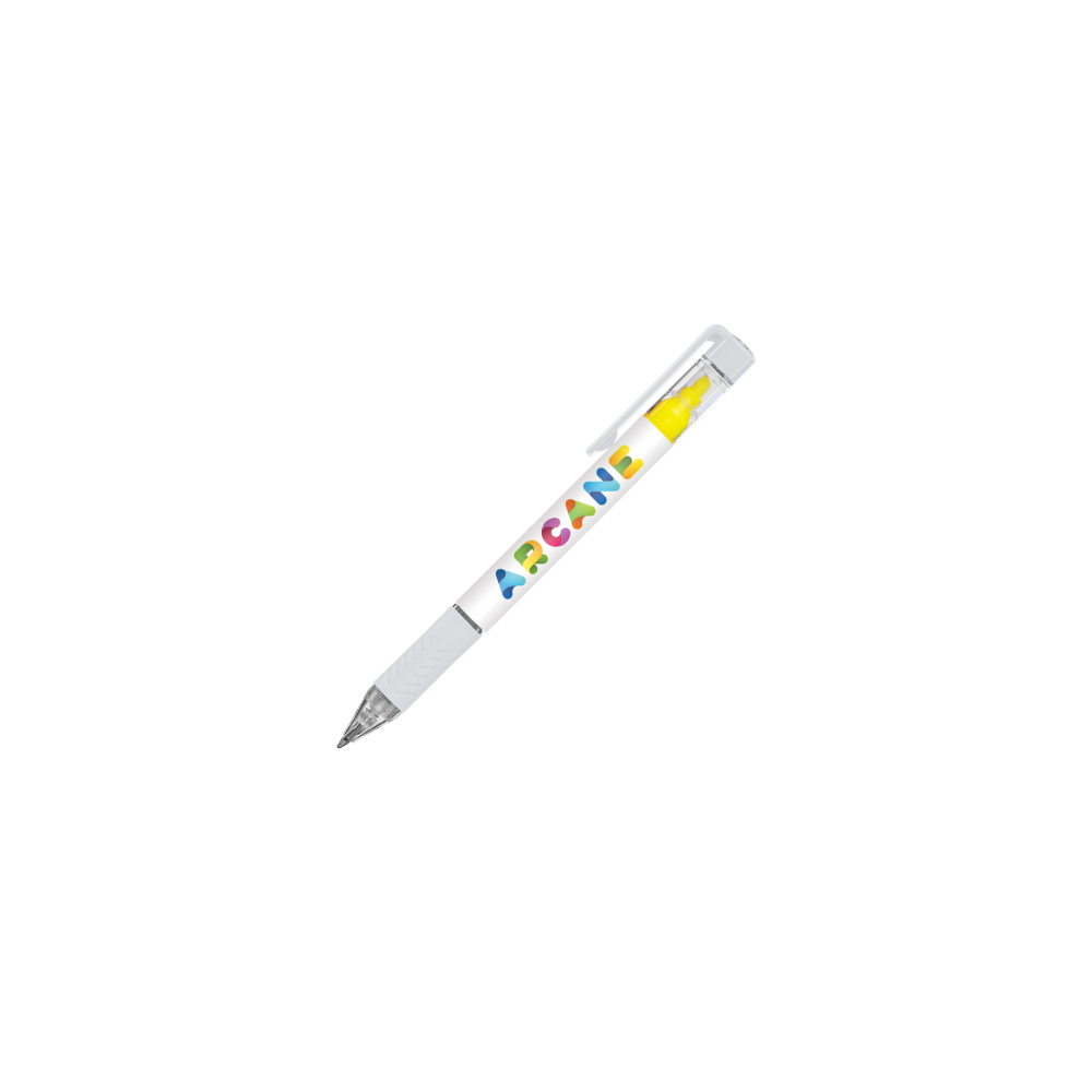 Artikel-Nr: ARD19675-07SNAP ist eine neue Art von Textmarker in Form eines automatischen Stifts. Der Textmarker wird durch Drücken des Knopfes auf der Oberseite ein- und ausgeschaltet. Der Highlighter ist zusätzlich durch eine Kappe vor dem Austrocknen geschützt. Gehäuse aus weißem Kunststoff mit Clip und Spitzen in der Farbe des Textmarkers.