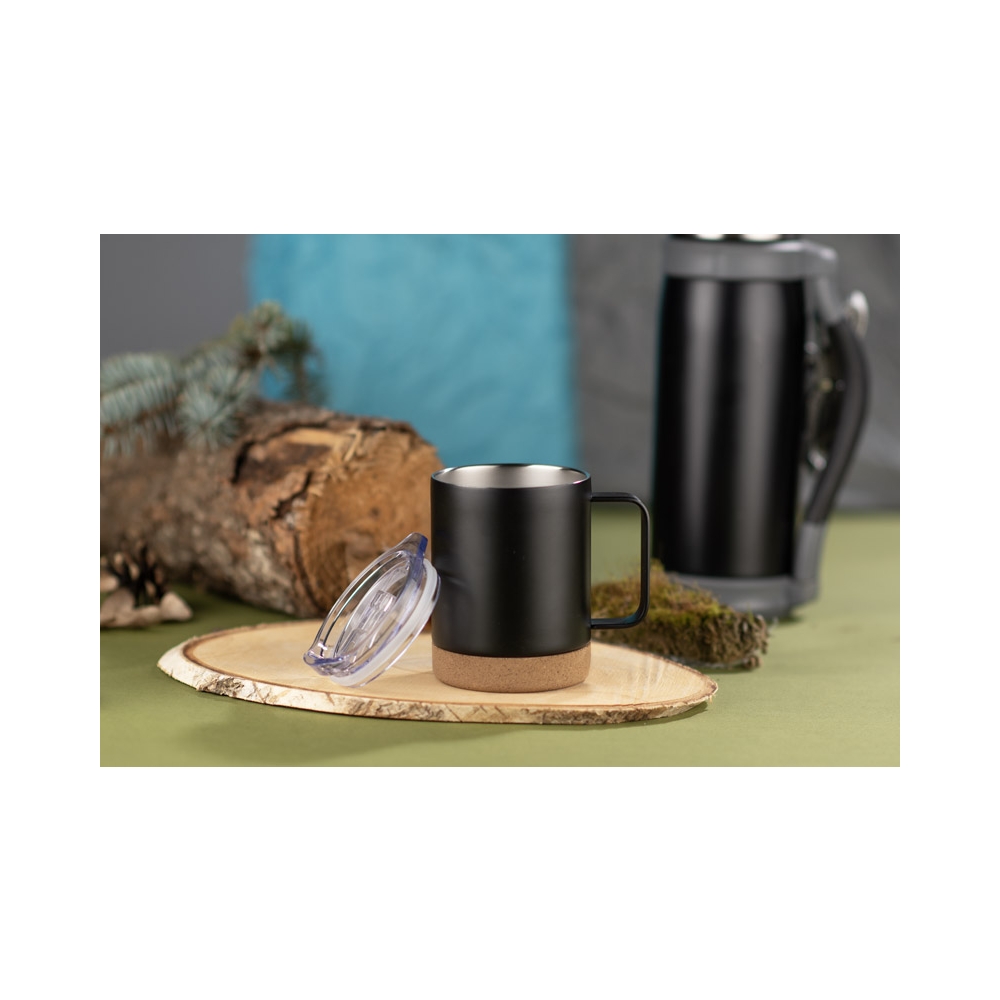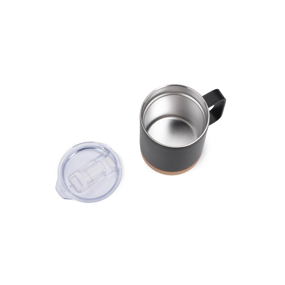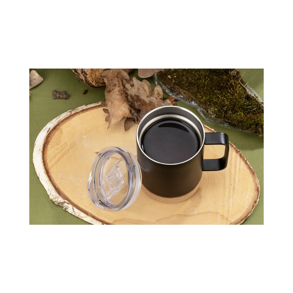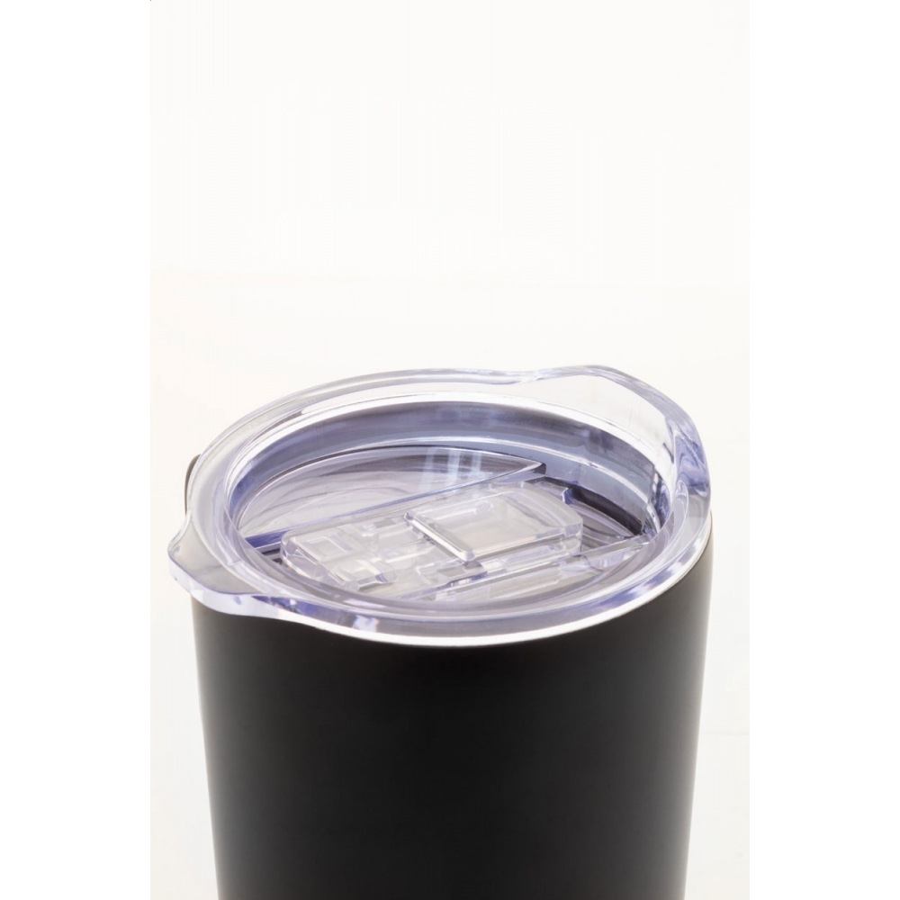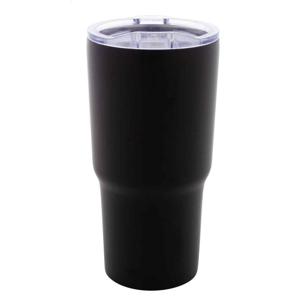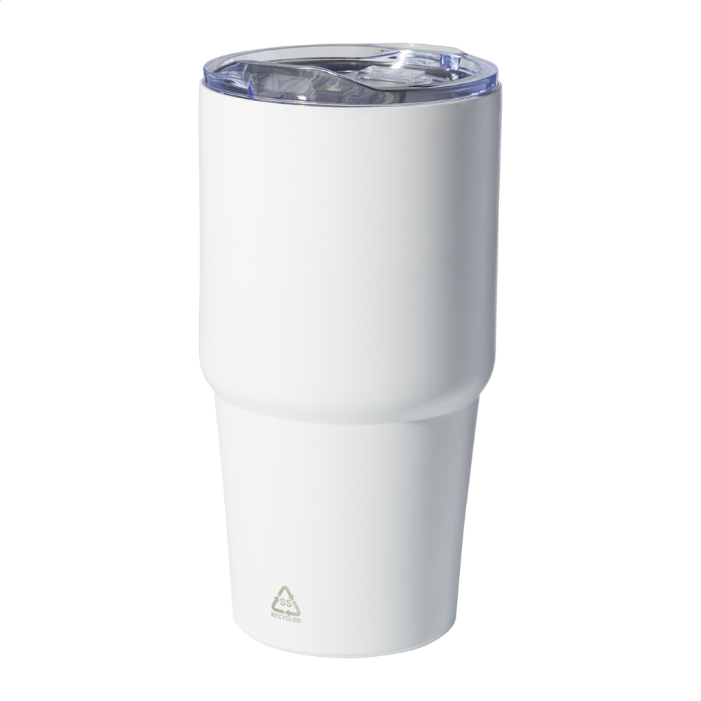Artikel-Nr: AND808147-10Doppelwandiger, vakuumisoloierter Thermobecher aus recyceltem Edelstahl mit Trinkdeckel aus PS Kunststoff. Füllmenge: 600 ml.