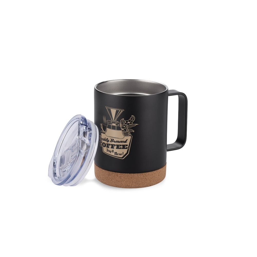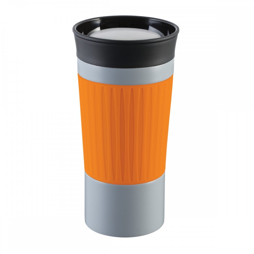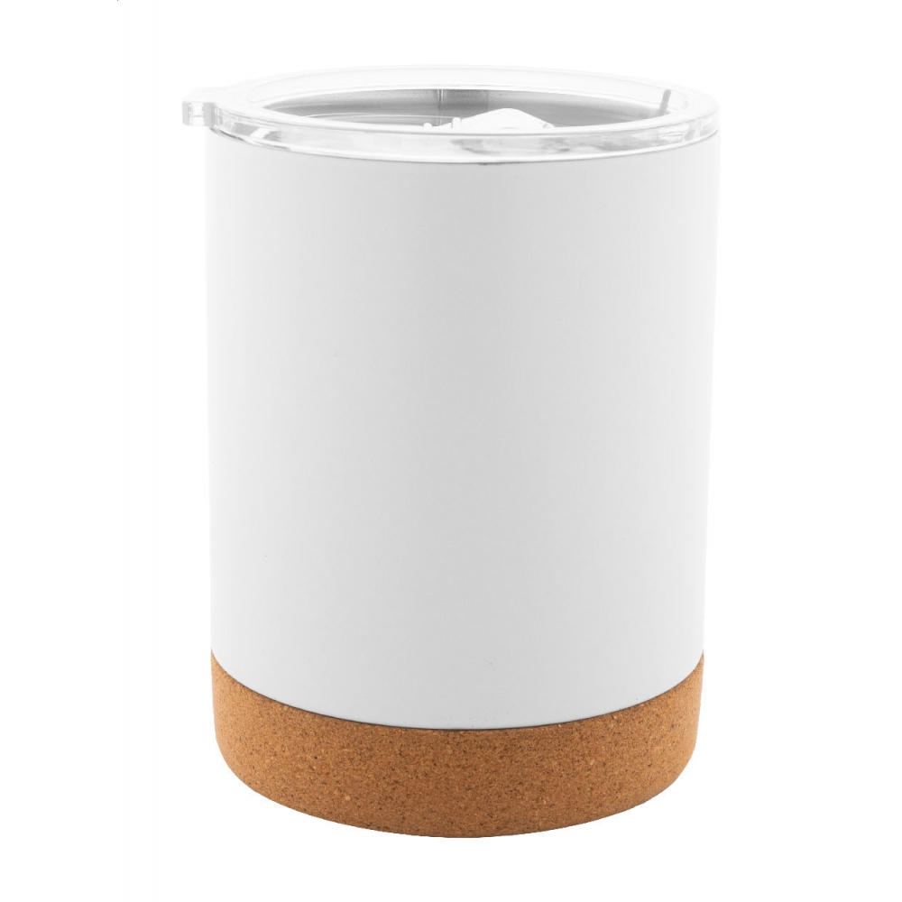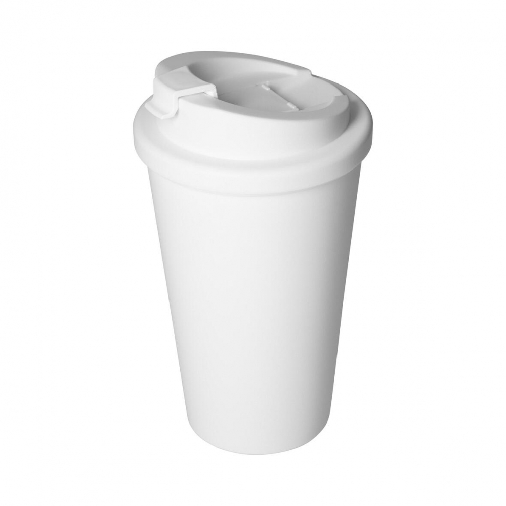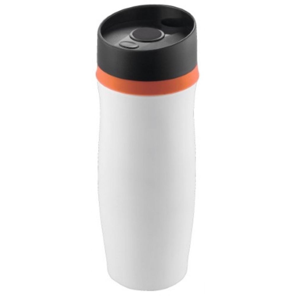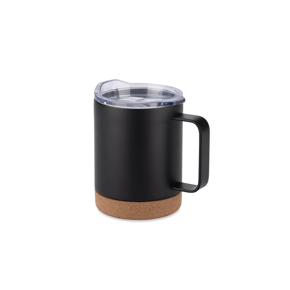 Artikel-Nr: AND808147-10Doppelwandiger, vakuumisoloierter Thermobecher aus recyceltem Edelstahl mit Trinkdeckel aus PS Kunststoff. Füllmenge: 600 ml.