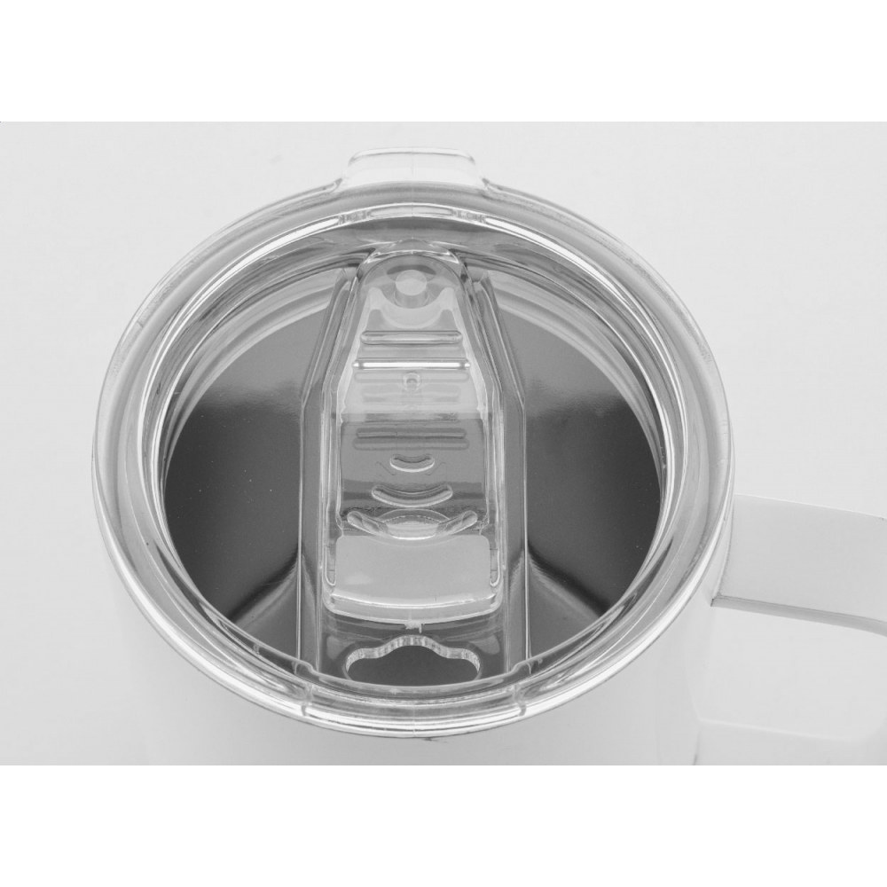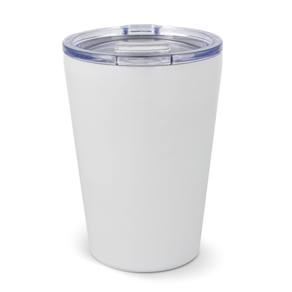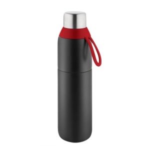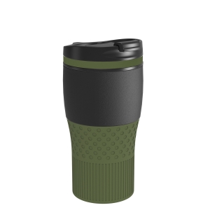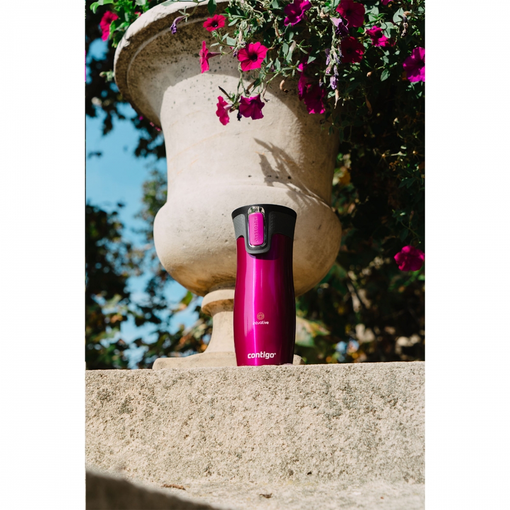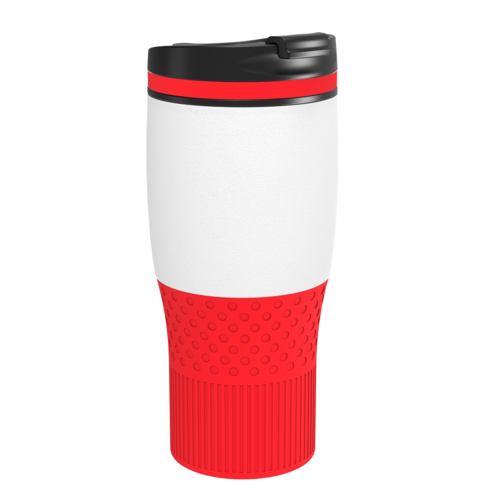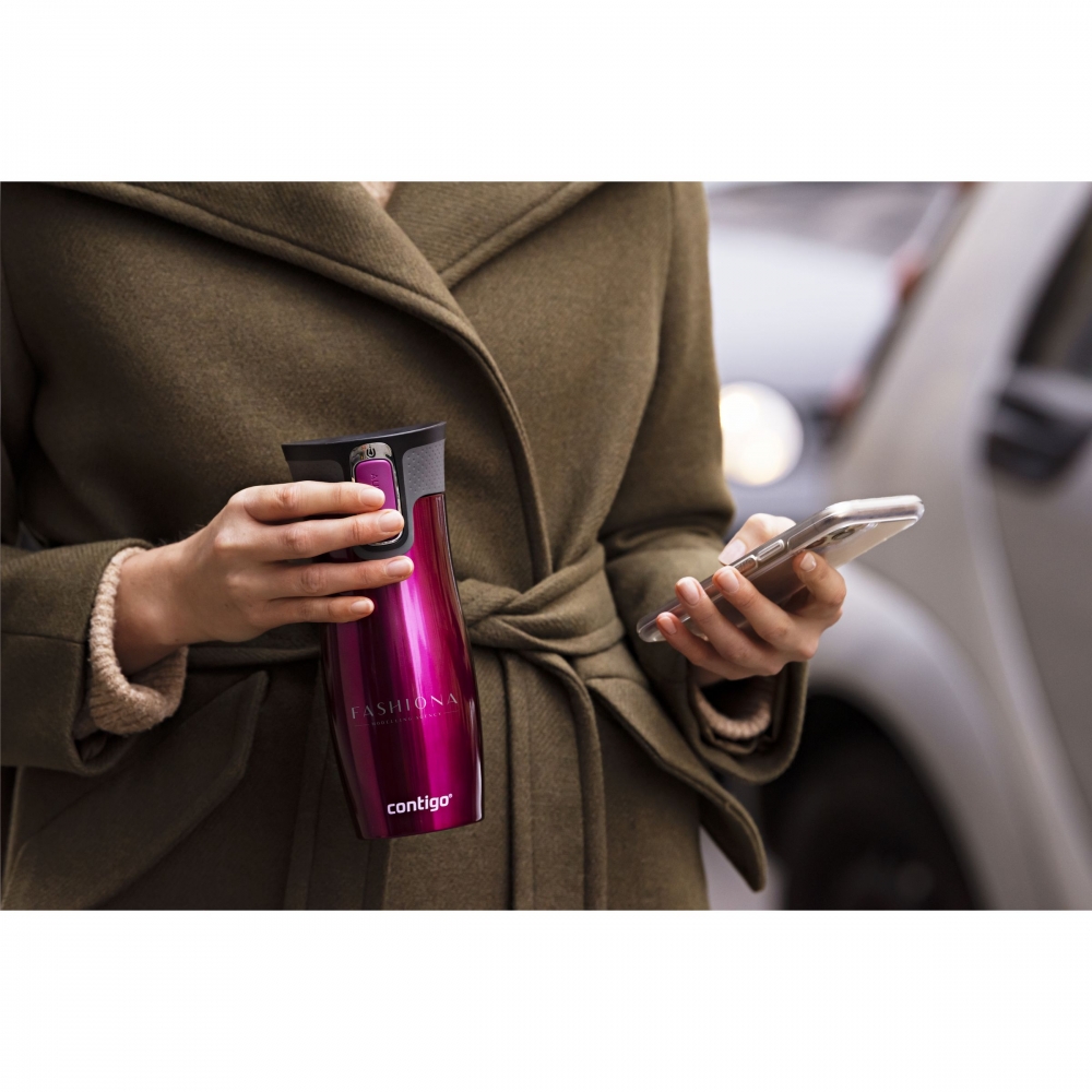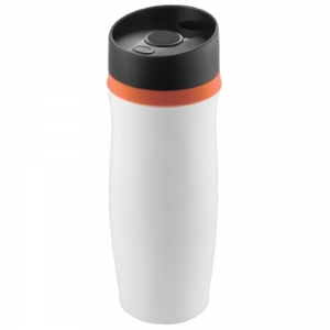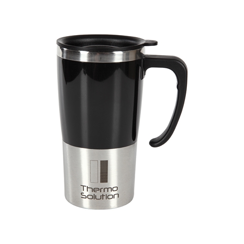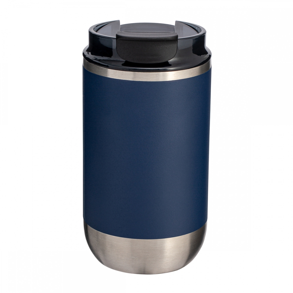 Artikel-Nr: AND808147-10Doppelwandiger, vakuumisoloierter Thermobecher aus recyceltem Edelstahl mit Trinkdeckel aus PS Kunststoff. Füllmenge: 600 ml.