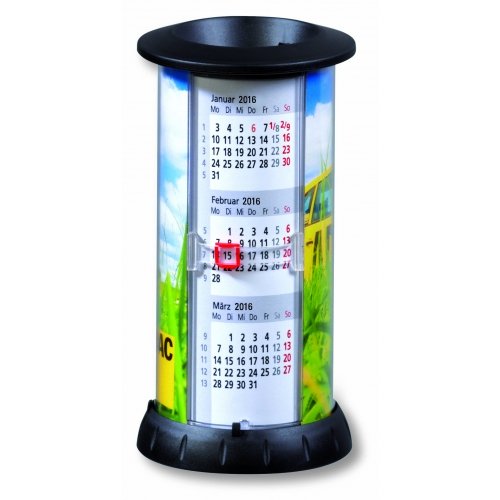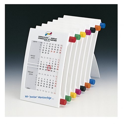 Individueller Tischkalender mit Spiralbindung auf einem Notizblockständer. Enthält 50 Haftnotizen aus Recyclingpapier (100 × 75 mm) und 100 Folienmarker. Mit 12 Monatsblättern und einem Deckblatt. Der Preis ist inkl. Digitaldruck auf allen Seiten. Mindestmenge: 100 Stk.