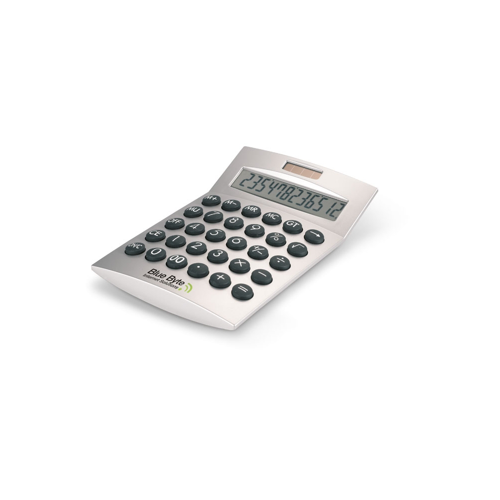 Artikel-Nr: RFS60154-BKGDGeschwungener und formschöner Tischrechner mit Dualpower (Solar und Batterie). Die Seiten des Taschenrechners sind farblich abgesetzt und bilden einen angenehmen Kontrast zur schlichten schwarzen Oberfläche. Die flachen Tasten des Solartaschenrechners sind schwarz mit goldenem Aufdruck. Die gut sichtbare Veredelungsfläche kann im Tampondruck (1 bis 4c) oder im UV Druck mit Logo veredelt werden. Das Display zeigt 10 Stellen und die Batterie ist enthalten.