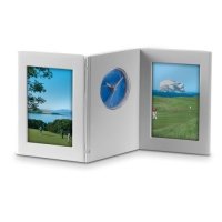 Elegante Tischuhr mit Metallgehäuse glänzend, Gehäuse zusammenlegbar, Neigung einstellbar, Markenuhrwerk von Miyota (by CITIZEN), 5 Jahre Garantie, in Geschenkverpackung.