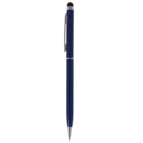 Blauschreibender Metallkugelschreiber mit gummiertem Pointer zum Bedienen von Touchscreens (wie iPhone / iPad), hochglänzenden Akzenten und Dreh-Klicksystem.