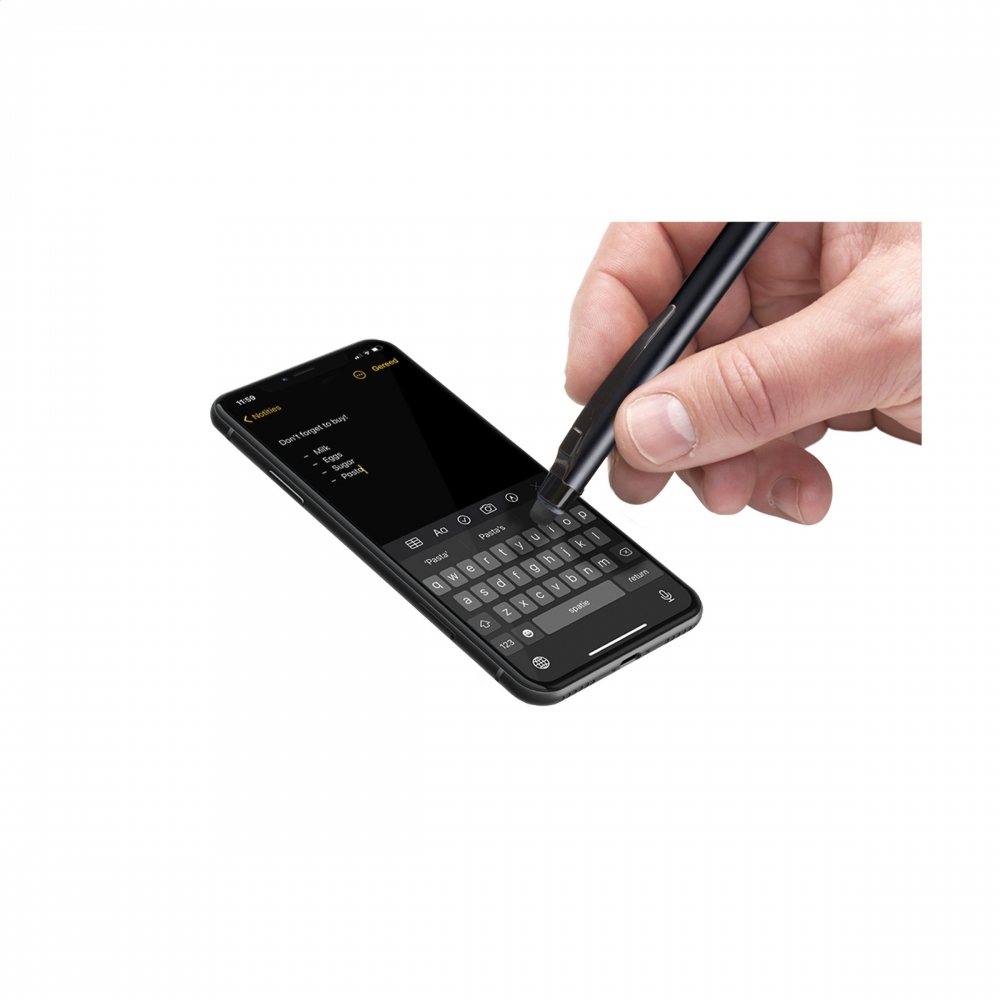 Styllo 2 ist der perfekte Stift für den Übergang zwischen digitalen und analogen Aufgaben. Mit einer einfachen Drehung verwandelt er sich von einem glatten Rollerball-Stift für Papier in einen kapazitiven Mesh-Stift oder einen Präzisions-Disk-Stift für Touchscreens, ideal für kreative Profis. Das solide Aluminiumgehäuse sorgt für Tragbarkeit und ein schlankes, professionelles Aussehen. Styllo ist mit allen Touchscreen-Geräten kompatibel, benötigt keine Batterien und ist immer einsatzbereit. Er wird in einer schwarzen Papierschachtel geliefert und verbindet Funktionalität mit umweltfreundlicher Verpackung.