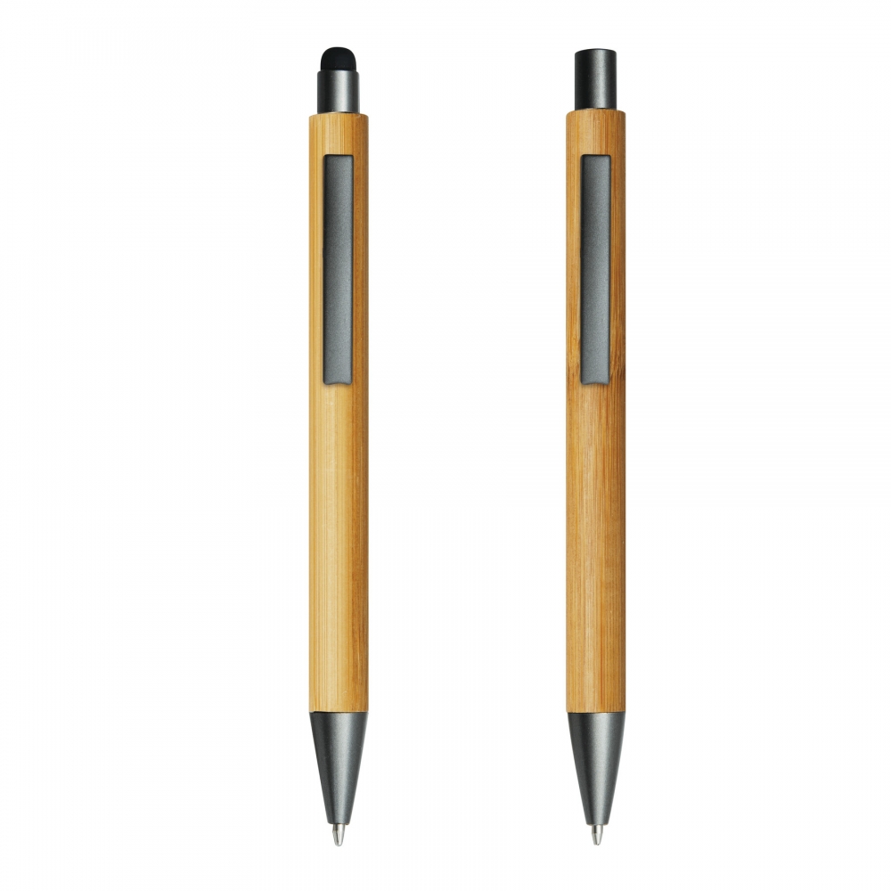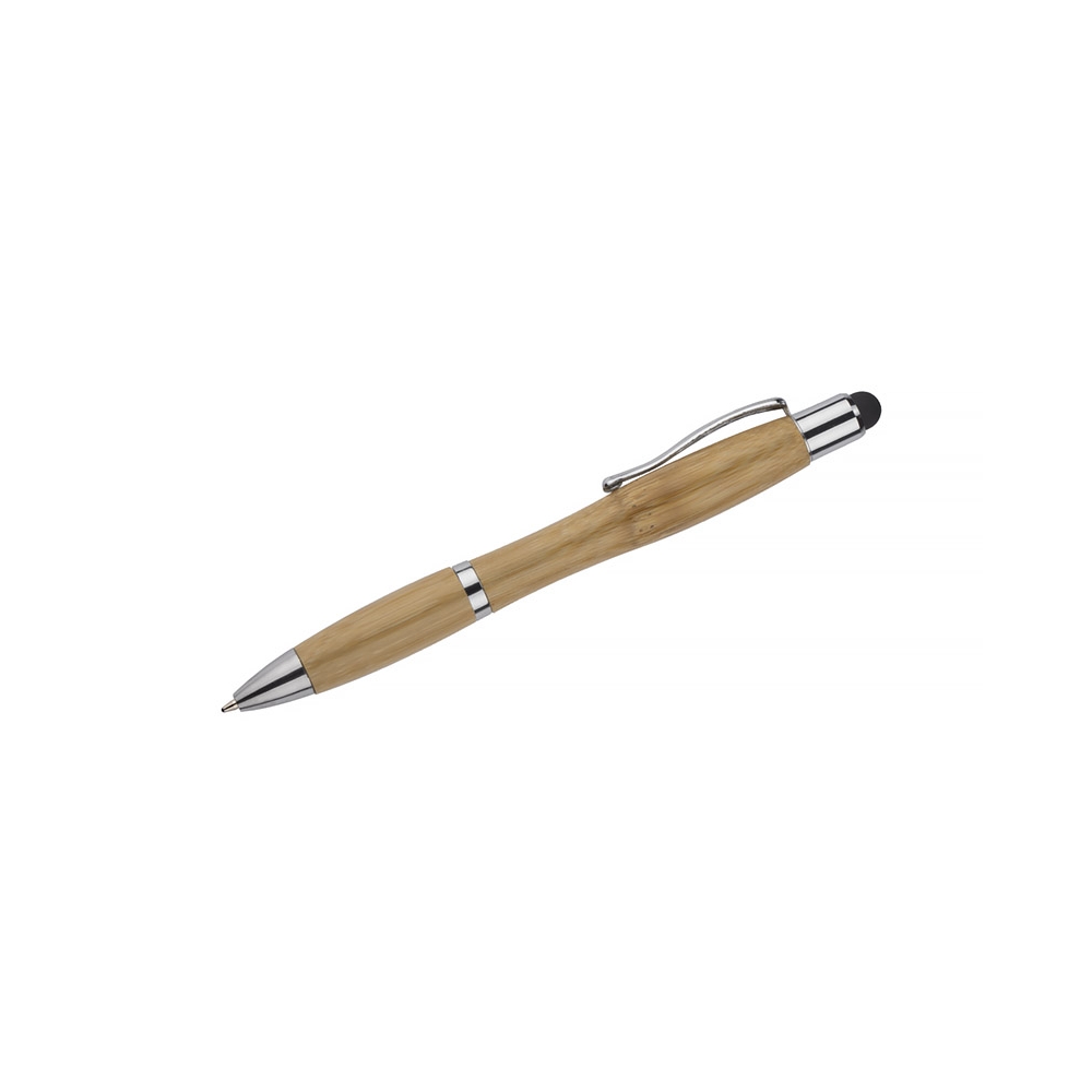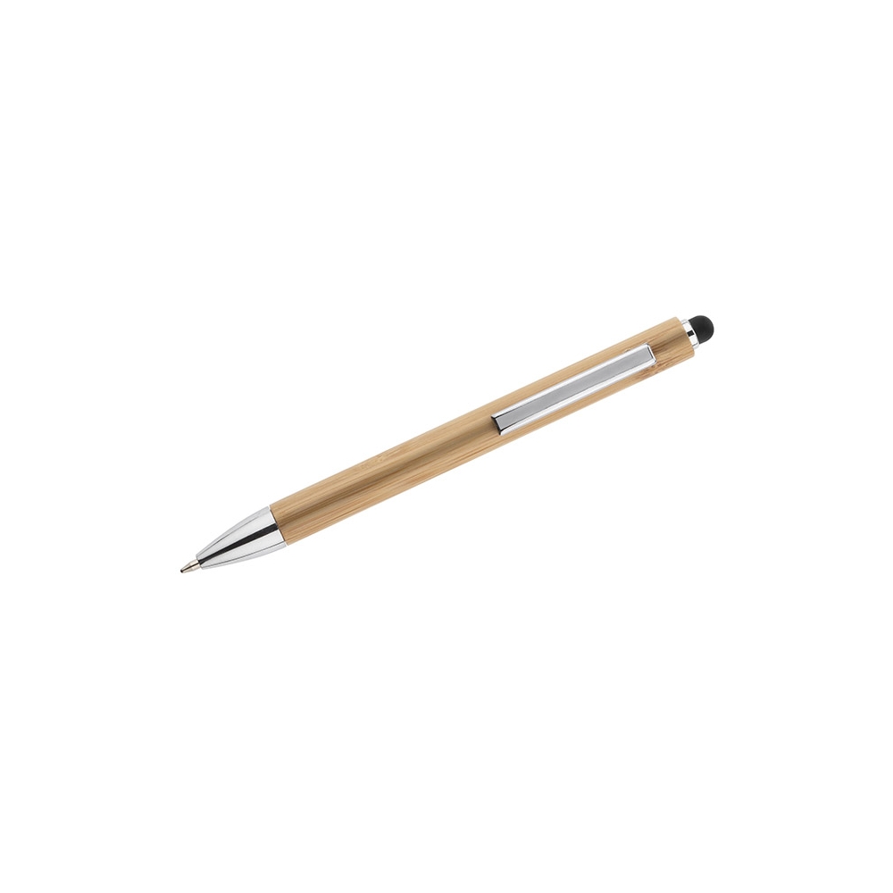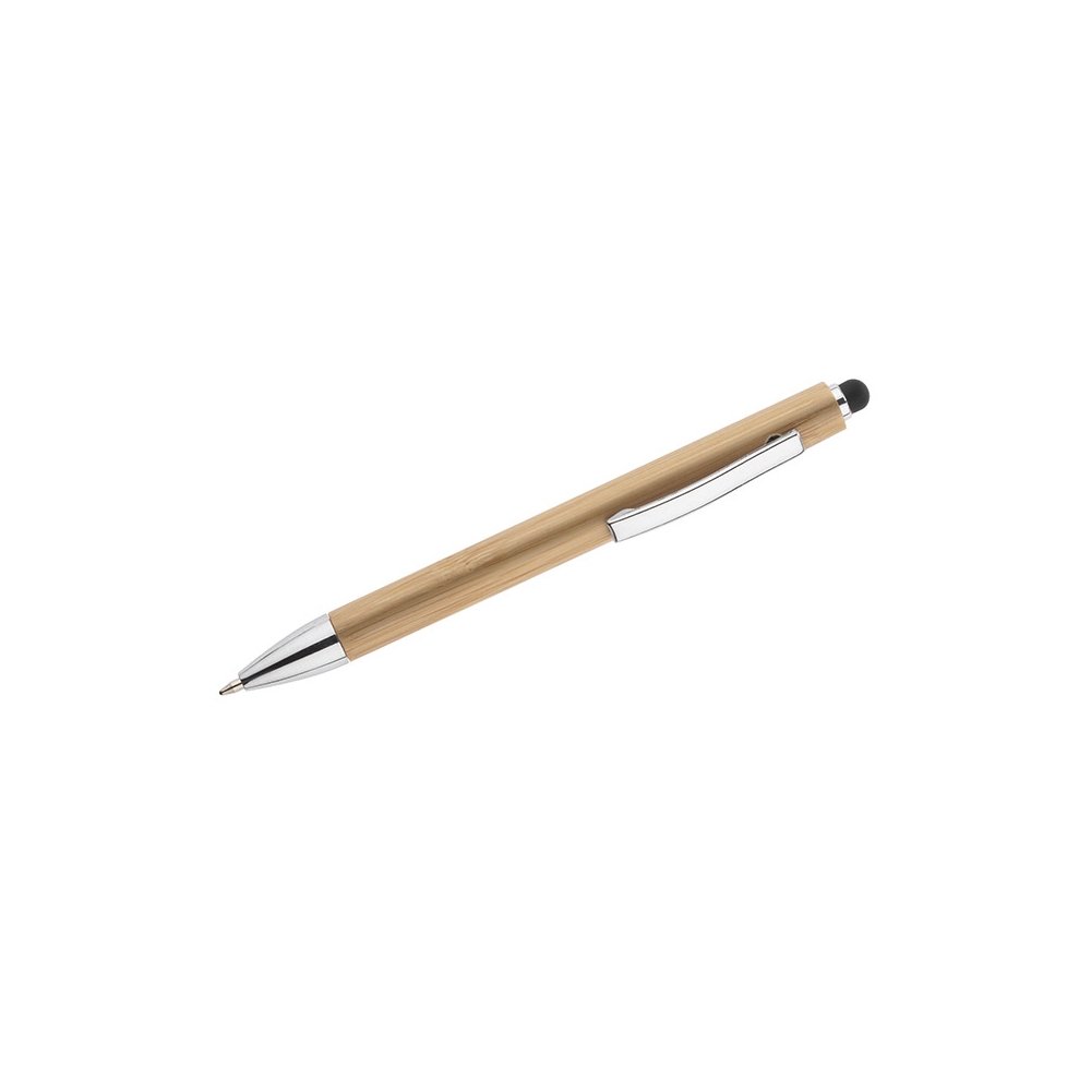 TUSO ist ein Stift, dessen Körper vollständig aus Bambus besteht. Verziert mit Chromelementen. Der farbenfrohe Tipp für Touchscreens ist eine interessante Dekoration. Automatischer Kugelschreiber. Ersatzmine Typ G2 in blau.