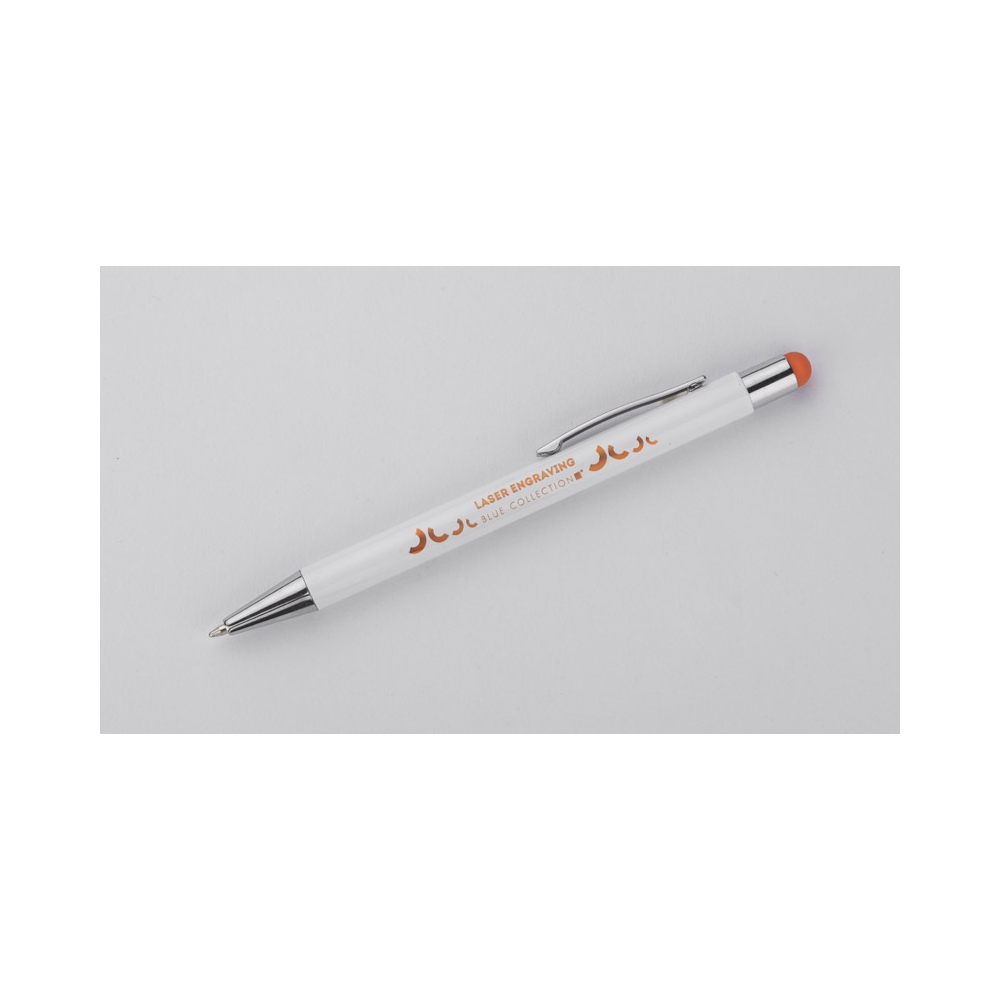 BIANCO ist ein Kugelschreiber, der durch den Effekt seiner Markierung überrascht. Die Gravurfarbe ähnelt dem Touch-Tipp für Touchscreens. Der Stiftkörper besteht aus Aluminium und ist mit weißer Farbe überzogen. Automatischer Kugelschreiber Ersatzmine Typ G2 in blau.
