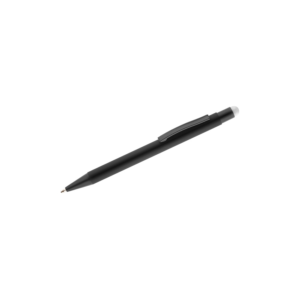 Alu-Kugelschreiber BLACK BEAUTY, mit Großraummine, Touchscreen-Spitze zur Bedienung von Smartphones und Tablets, matte Oberfläche mit farbiger Unterlegung für eine Gravur passend zur Farbe der Touchscreen-Spitze, blauschreibend