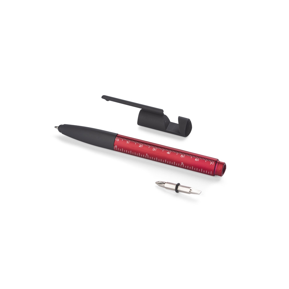 Das praktische SET in kleiner Form enthält bis zu 8 Funktionen: Kugelschreiber, Touchscreen-Tipp, Bildschirmreiniger, Telefonständer, 2 Schraubendreher, 2 Lineale (Zoll und Zentimeter). Aus Kunststoff hergestellt. Mechanismus des Typs Twist. Ersatzmine Typ X20 in blau.