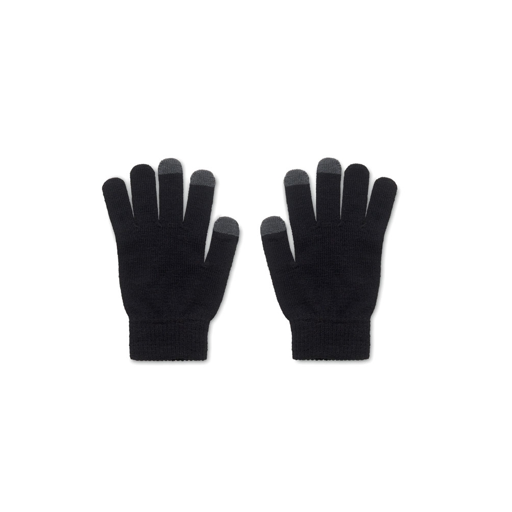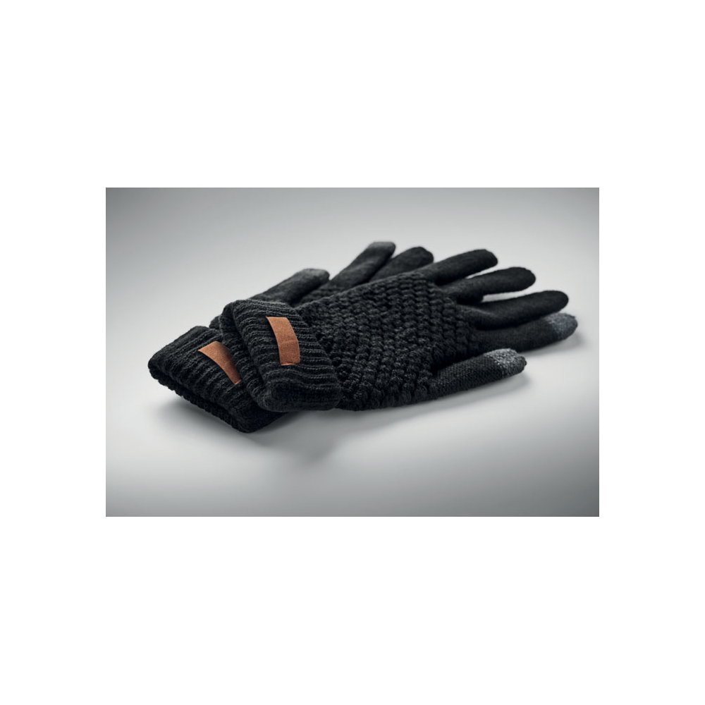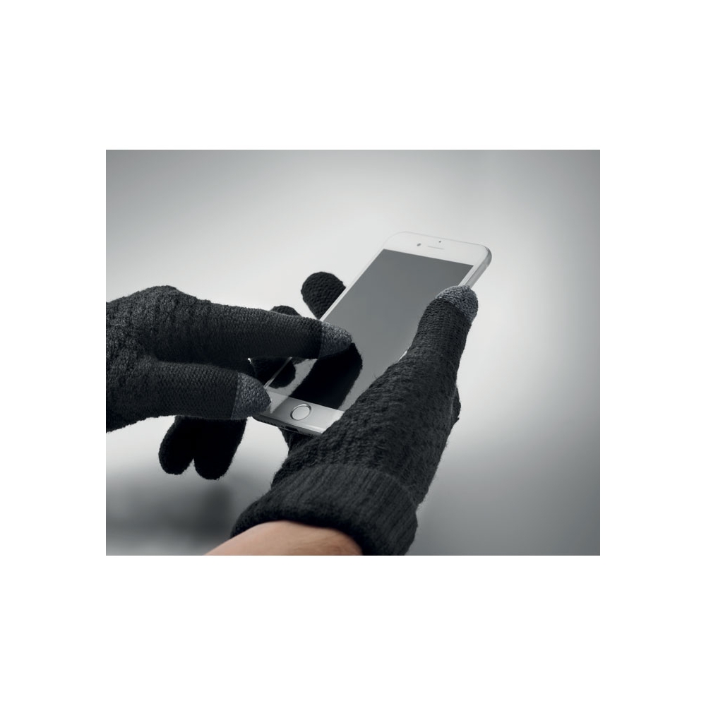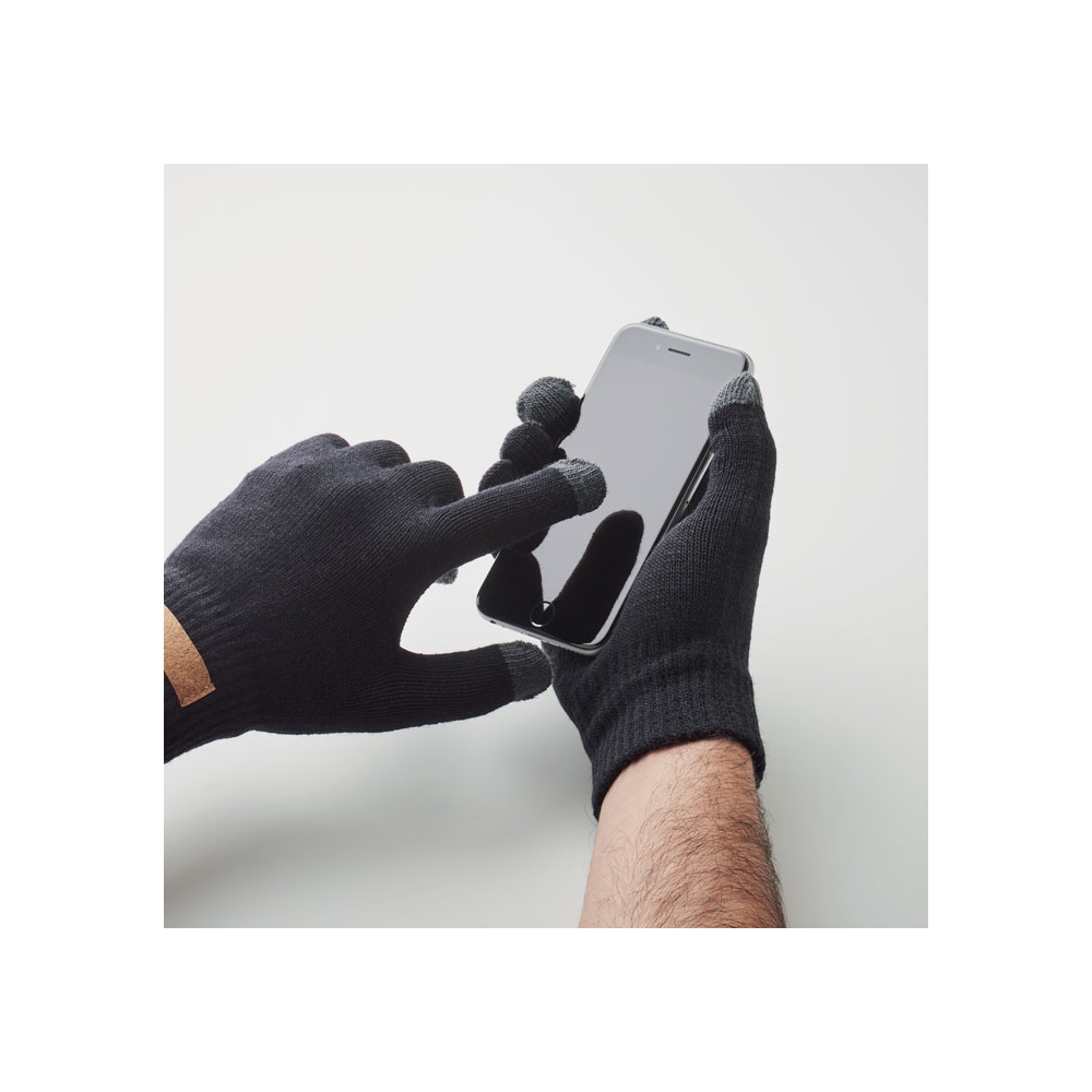 Touchscreen Handschuhe aus RPET. Dank der eingearbeiteten leitfähigen Fasern kann der Bildschirm bedient werden. Mit Label zur Werbeanbringung