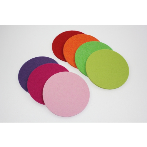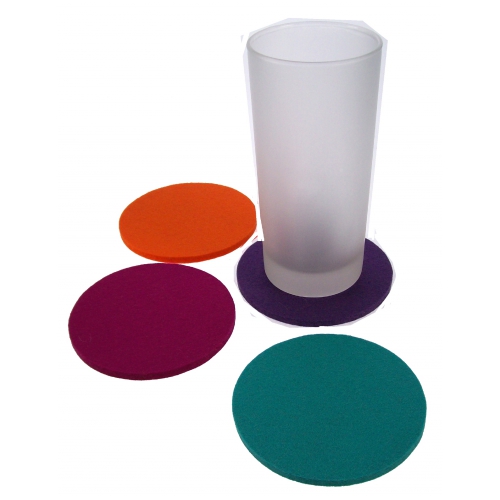 Die Standardfarben der Untersetzer sind gelb, grün und rot. Auf Anfrage können wir auch Ihre Wunschfarbe realisieren.