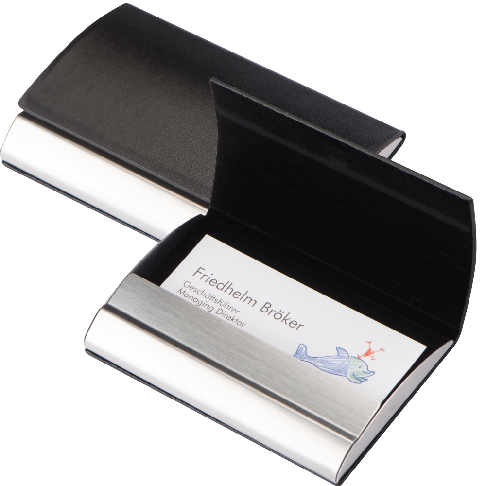 Elegantes Visitenkartenetui COOL CARDS: mit Edelstahl-Plättchen zur Werbeanbringung, in Leder-Optik