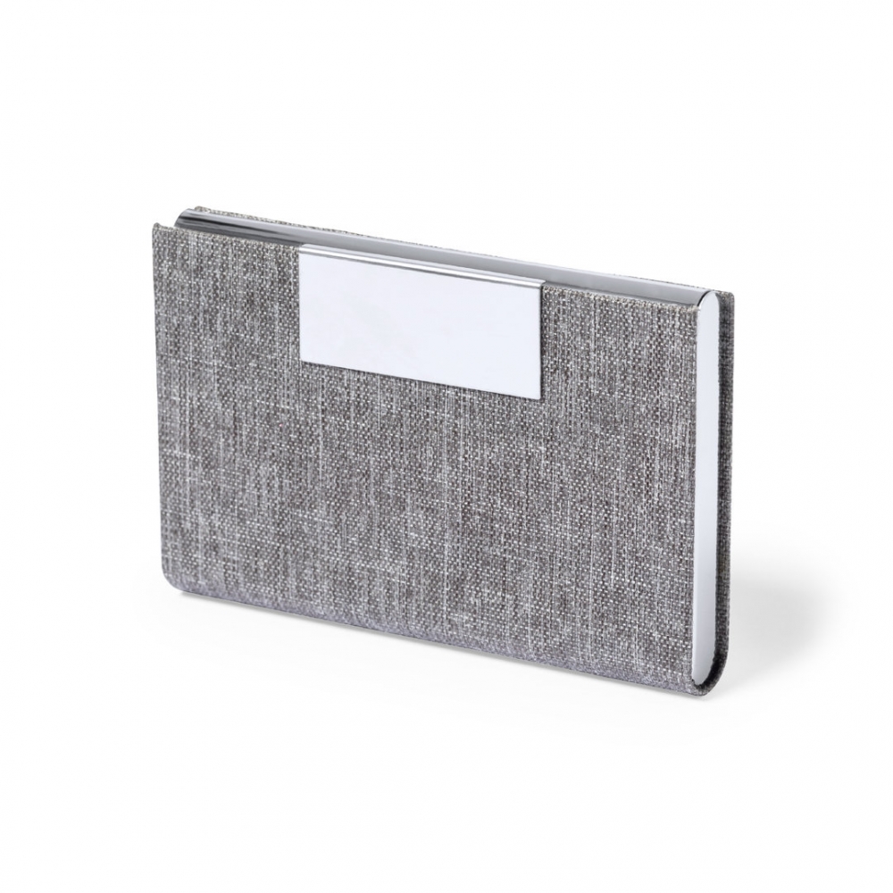 Visitenkartenhalter aus mit RPET-Polyester überzogenem Metall und mit bedruckbarem Metallteil.