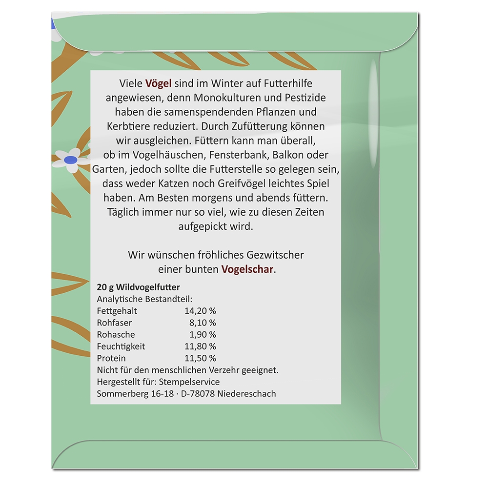 Artikel-Nr: HOP13.10144.0AUnser Vogelhäuschen, liebevoll aus Holz gefertigt, lädt dazu ein, die Artenvielfalt und den Vogelschutz im Garten zu fördern. Mit seiner romantisch verspielten Ausführung und der Möglichkeit, es ganz einfach zusammenzustecken, ist es nicht nur eine attraktive Ergänzung für jeden Außenbereich, sondern auch ein Beitrag zur Unterstützung unserer gefiederten Freunde. Im Herbst und Winter wird unser Vogelhäuschen zum Leckerschmecker-Ort für Piepmätze, die Schutz und Nahrung suchen. Der Werbereiter an der Verpackung unserer DIY Vogelvilla bietet eine optimale Werbefläche, um eine Botschaft zu präsentieren. Zusätzlich ka ...