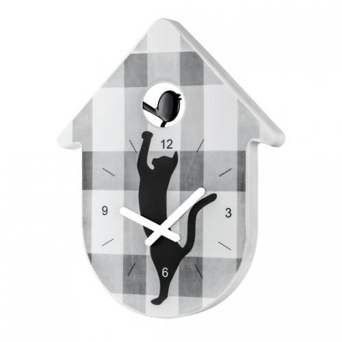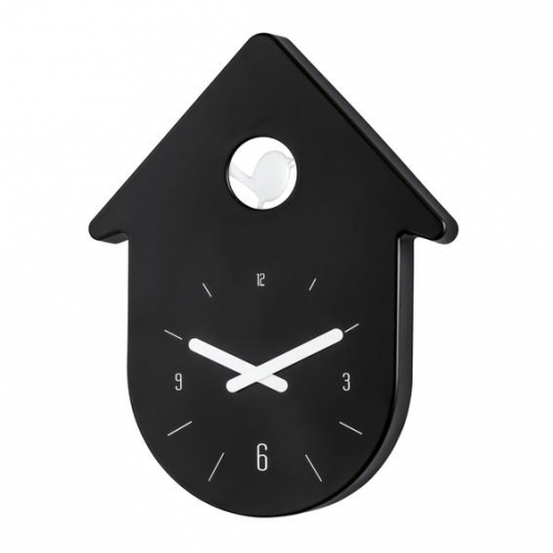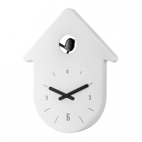 TOC -TOC informiert mit klarer, minimalistischer Gestaltung über die aktuelle Uhrzeit und schlägt trotzdem die kultige Brücke zum Uhr Großvater: Das Vöglein im Dachfirst pendelt lieblich und lebhaft hin und her, hält jedoch ansonsten sehr zuvorkommend den Schnabel.