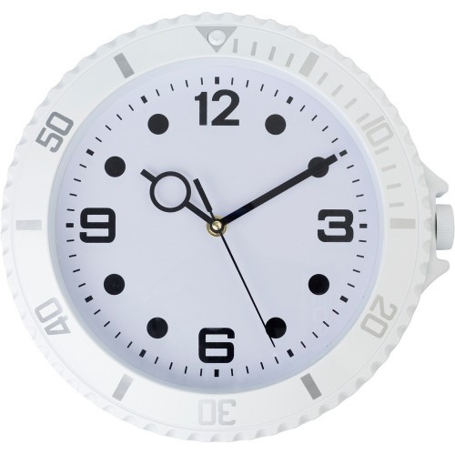 Runde Wanduhr aus Kunststoff mit austauschbarem Ziffernblatt (weiß/schwarz). Vollfarbdruck auf weißem Ziffernblatt auf Anfrage möglich. Exkl. Batterie (1 x AA).