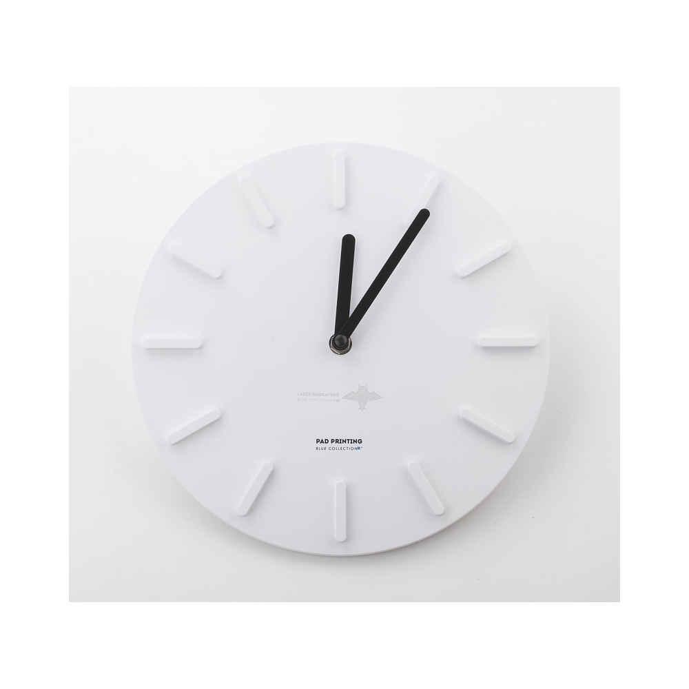 Wanduhr aus PVC-Schaum mit gestanztem Zifferblatt und individuellem Design. Exkl. Batterie (1xAA) Mindestmenge: 50 Stk.