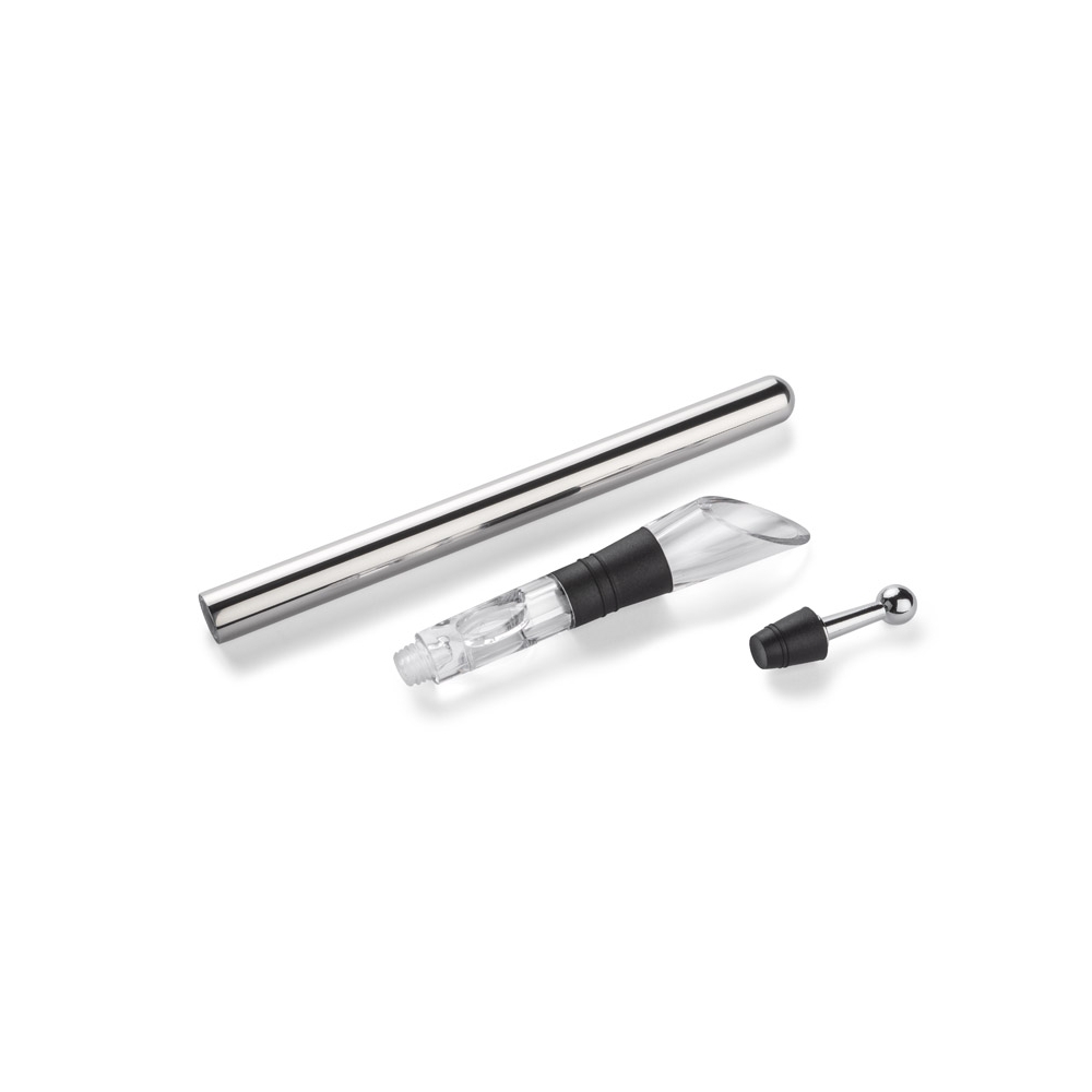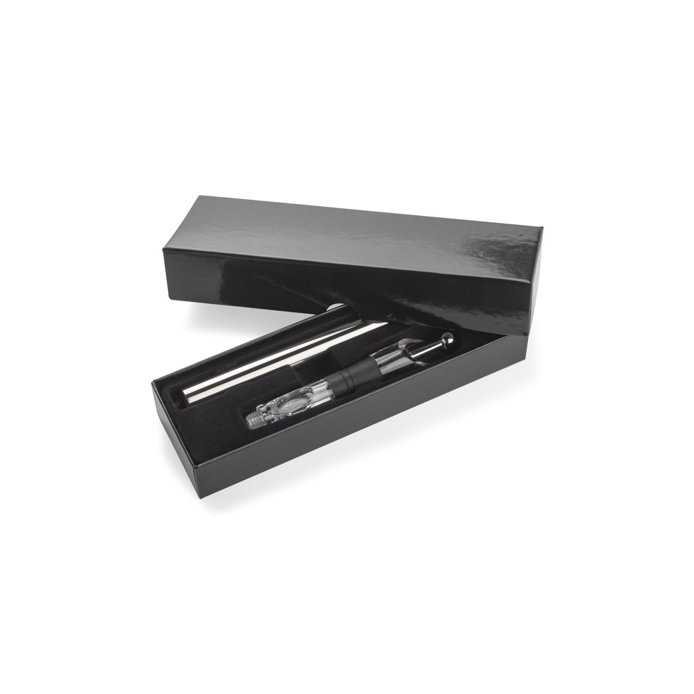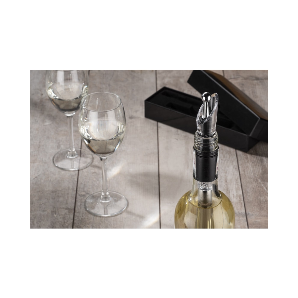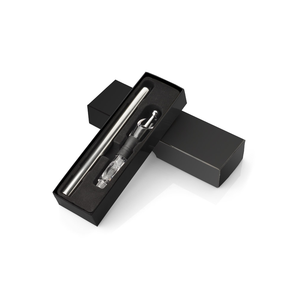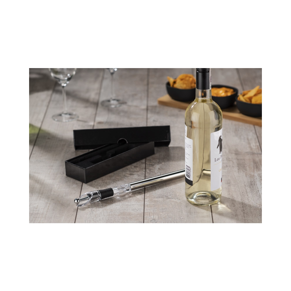 Artikel-Nr: ARD17668Ein wahrer Genuss für jeden Weinliebhaber. Dieses Produkt besticht durch viele Funktionen und zwar hält es die gewünschte Weintemperatur mit der speziellen Kühleinlage bei, belüftet den Wein und setzt seine Aromen dank des im Weinausgießer integrierten Luftsprudler frei und der verschließbare Korken garantiert die Beibehaltung aller Weinaromen in der Weinflasche. Die abschraubbare Kühleinlage ist vor dem Gebrauch im Gefrierschrank zu platzieren. Alle Elemente sind in einer eleganten schwarzen Schachtel verpackt.