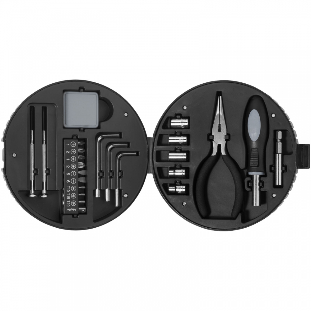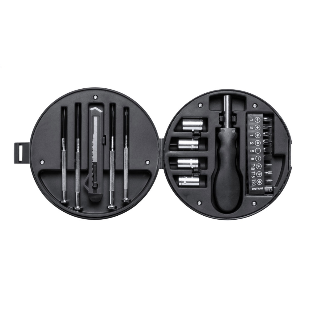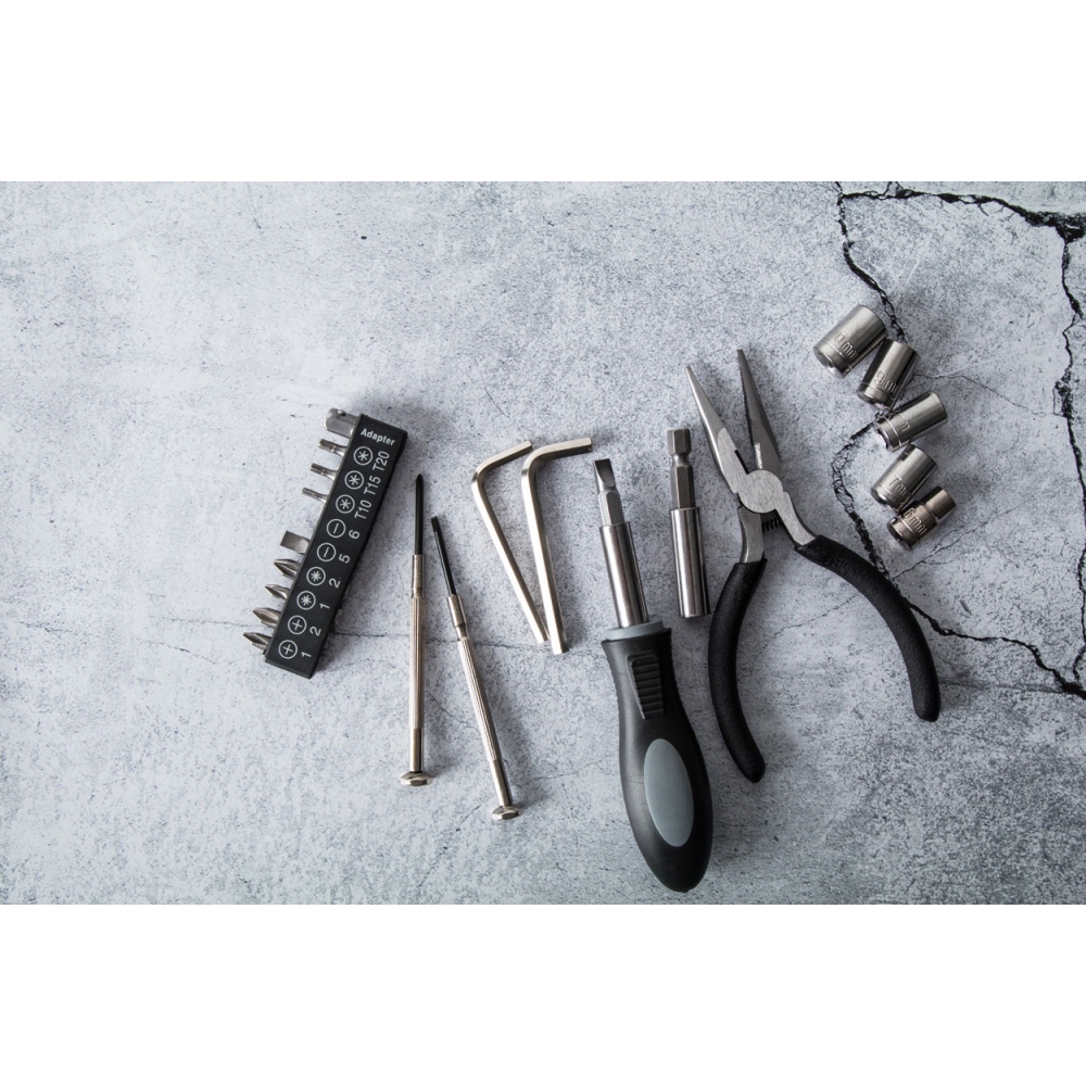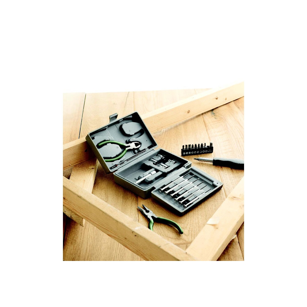 Artikel-Nr: KTO20483000000Werkzeugset in einer widerstandsfähigen Bambusbox mit Metallverschluss. Mit gestanzter Innenseite aus Bambus für eine perfekte Passform der Werkzeuge. Inklusive 15 Zubehörteilen: Steckschlüssel, Zange mit Schneidfunktion, Präzisionsschraubendreher (Flach- und Kreuzschlitz) und Schraubendreher mit einer Vielzahl an Schlitz-, Kreuz-, Sechskant- und Torx-Bits. Präsentiert in einer Kraft-Design-Box. Materialien wie Bambus fördern die Nutzung natürlicher Rohstoffe und reduzieren so den Schadstoffausstoß. Es stammt von einer äußerst widerstandsfähigen und vielseitigen Pflanze mit schnellem Wachstum und Regeneration, was es zu einer hervorr ...